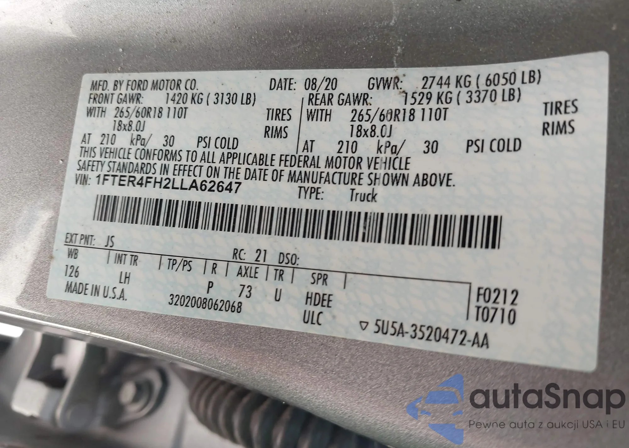 LOT: 42412749 VIN: 1FTER4FH2LLA62647