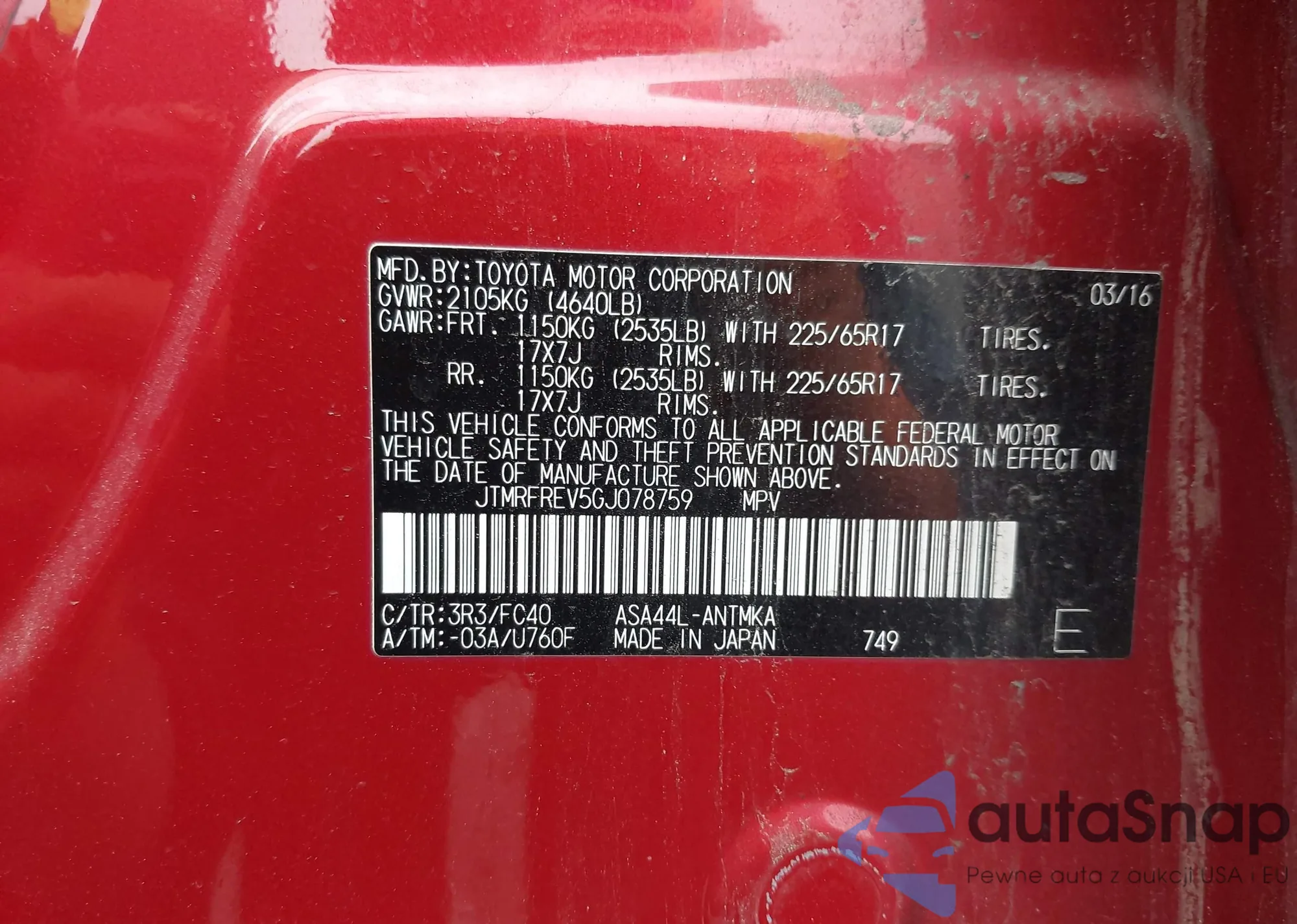 • VIN JTMRFREV5GJ078759
