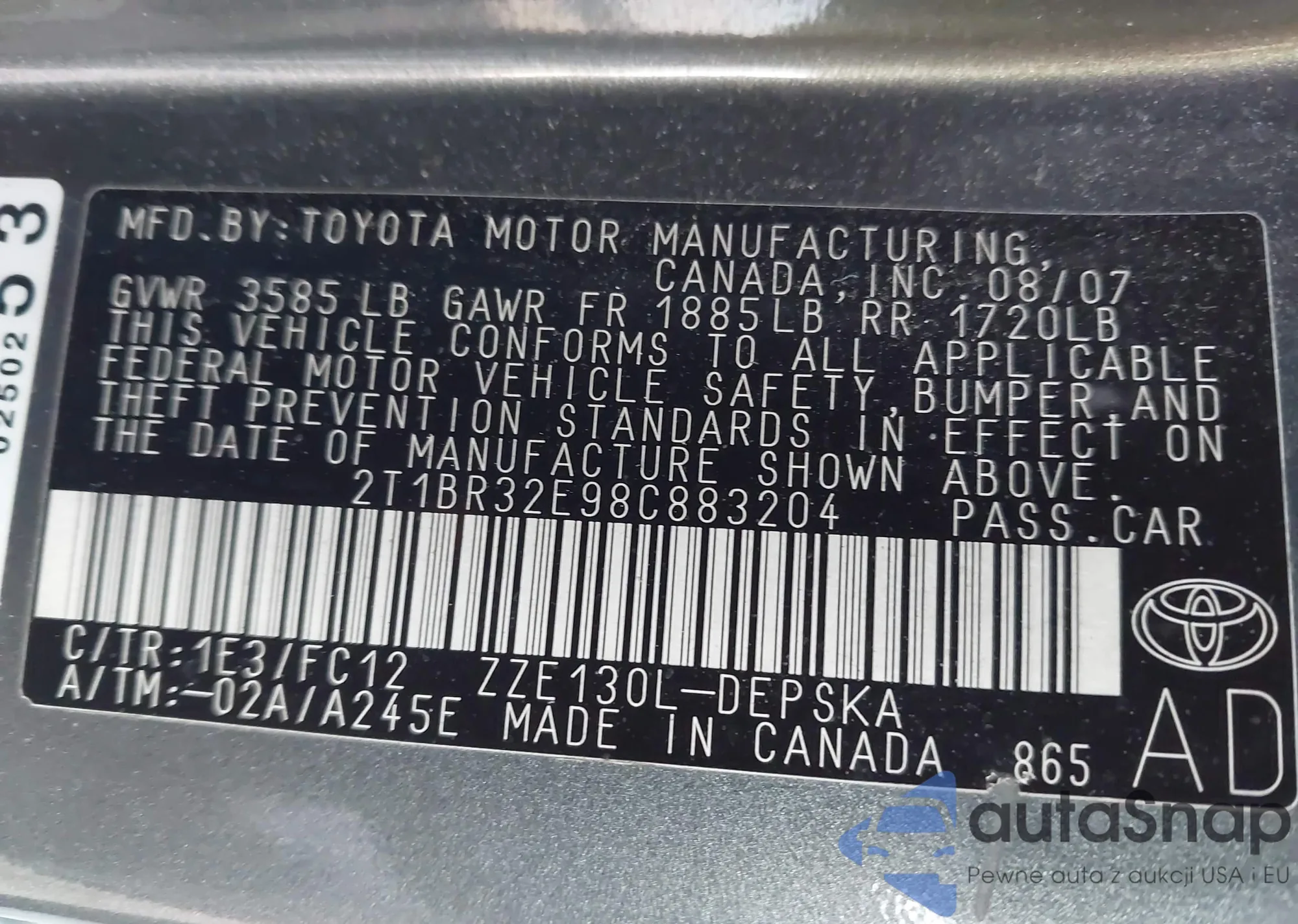 • VIN 2T1BR32E98C883204