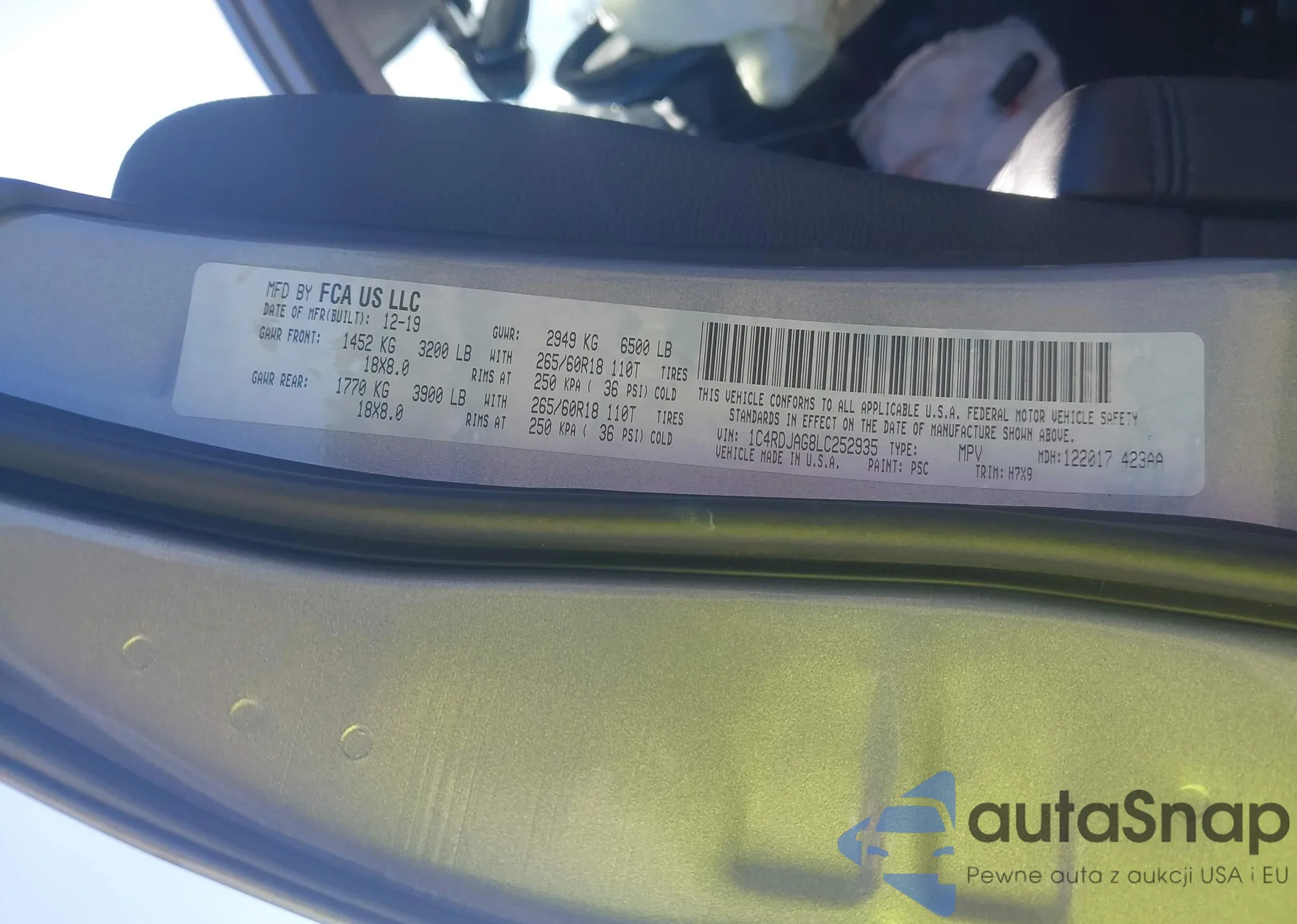 LOT: 42165754 VIN: 1C4RDJAG8LC252935