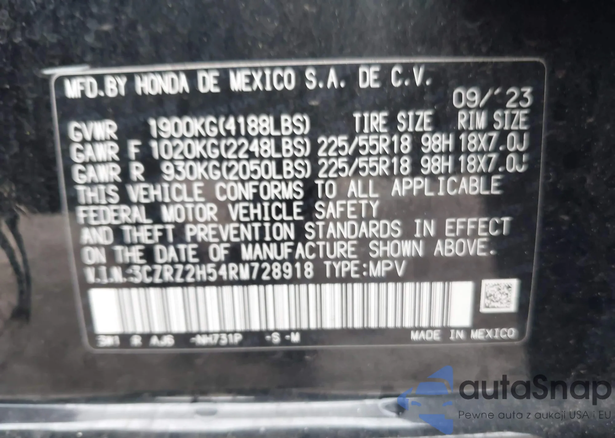 • VIN 3CZRZ2H54RM728918
