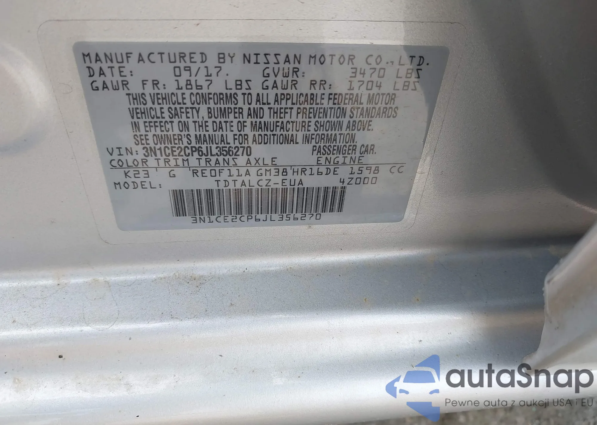 • VIN 3N1CE2CP6JL356270