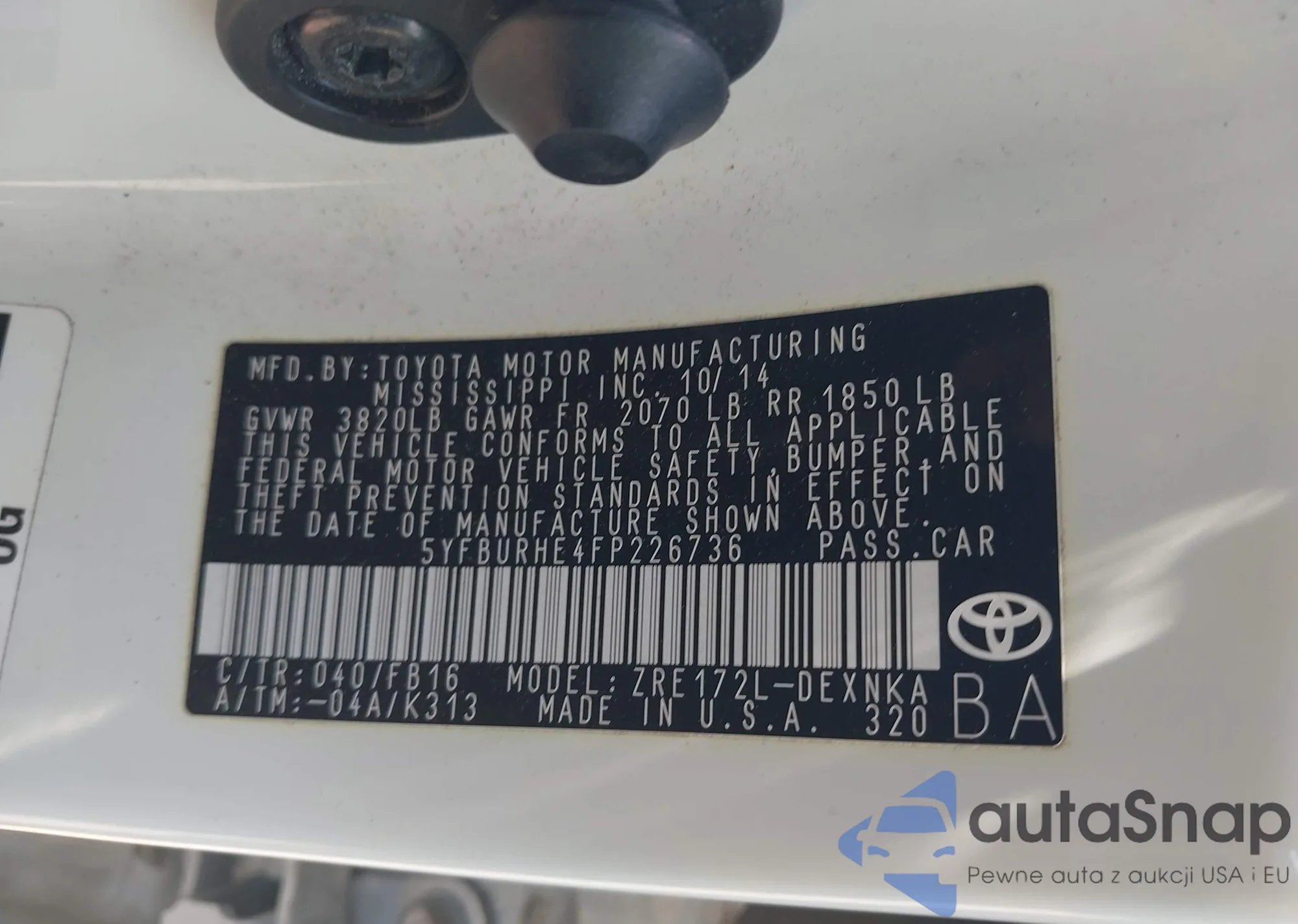 LOT: 42215736 VIN: JTKJF5C74B3012803