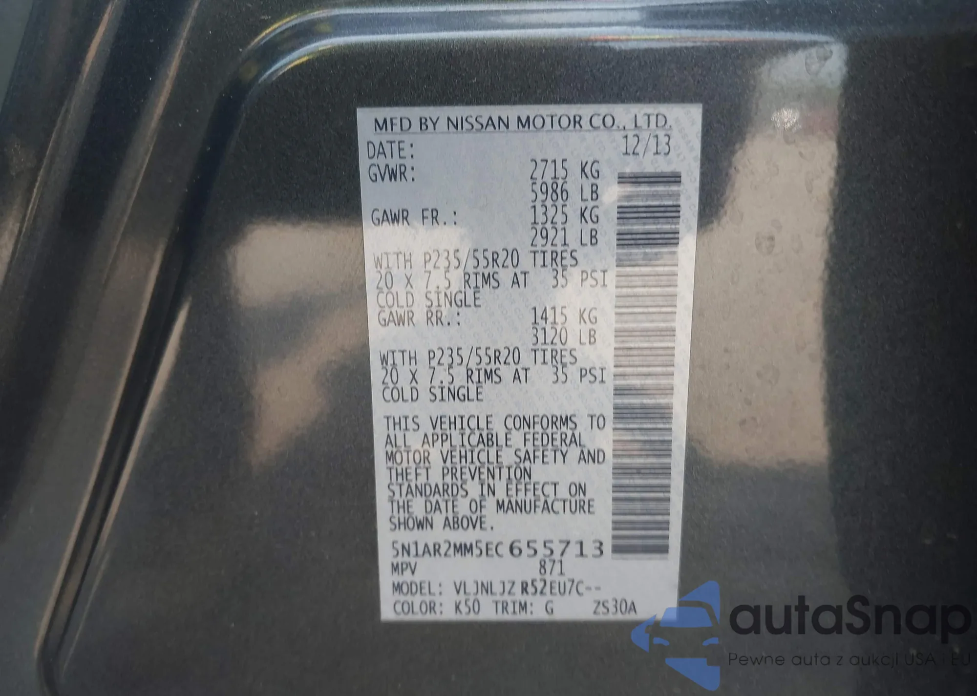 LOT: 42413135 VIN: 3N1CE2CP6JL356270