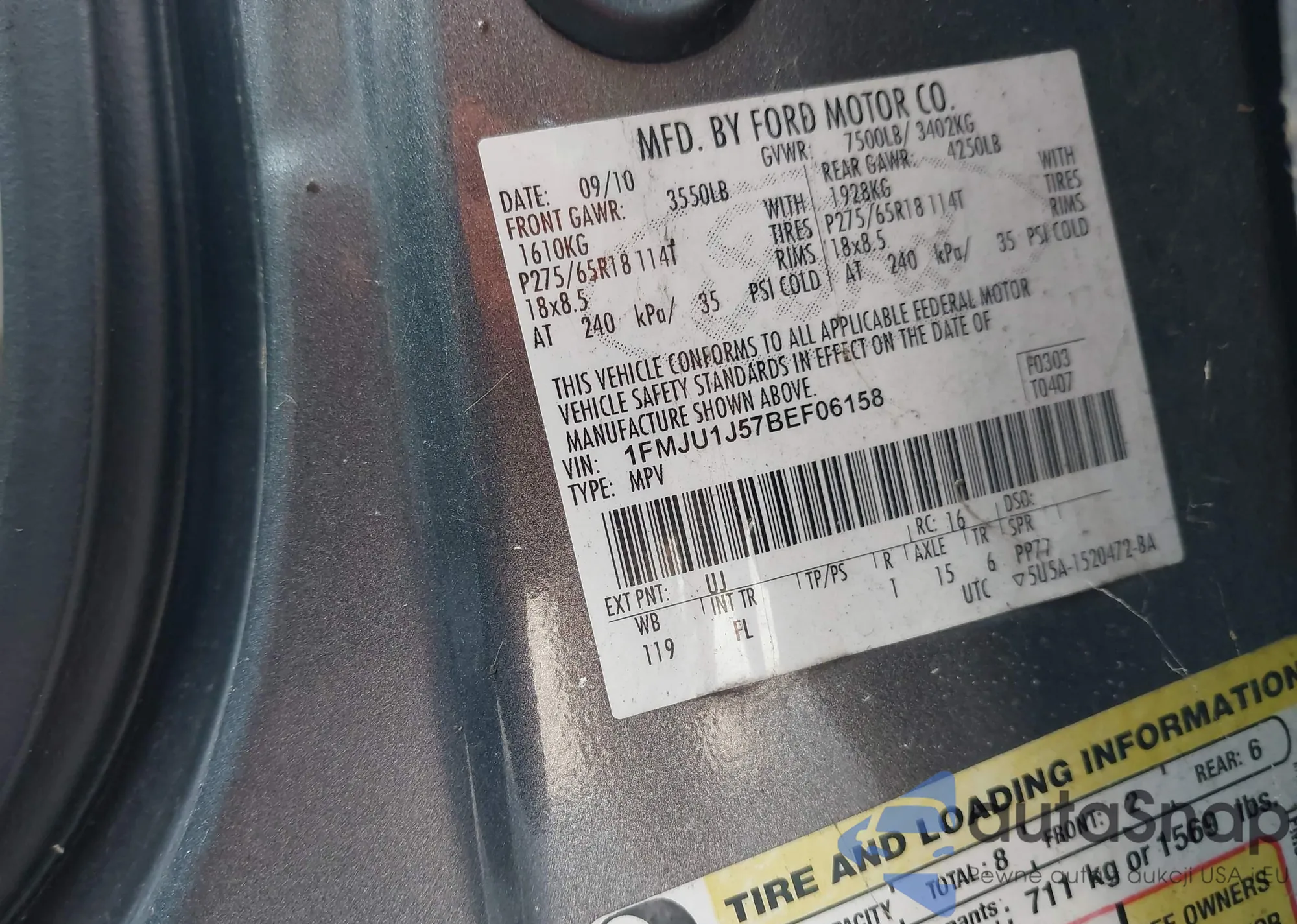 LOT: 42391300 VIN: 1FADP3F29DL309581