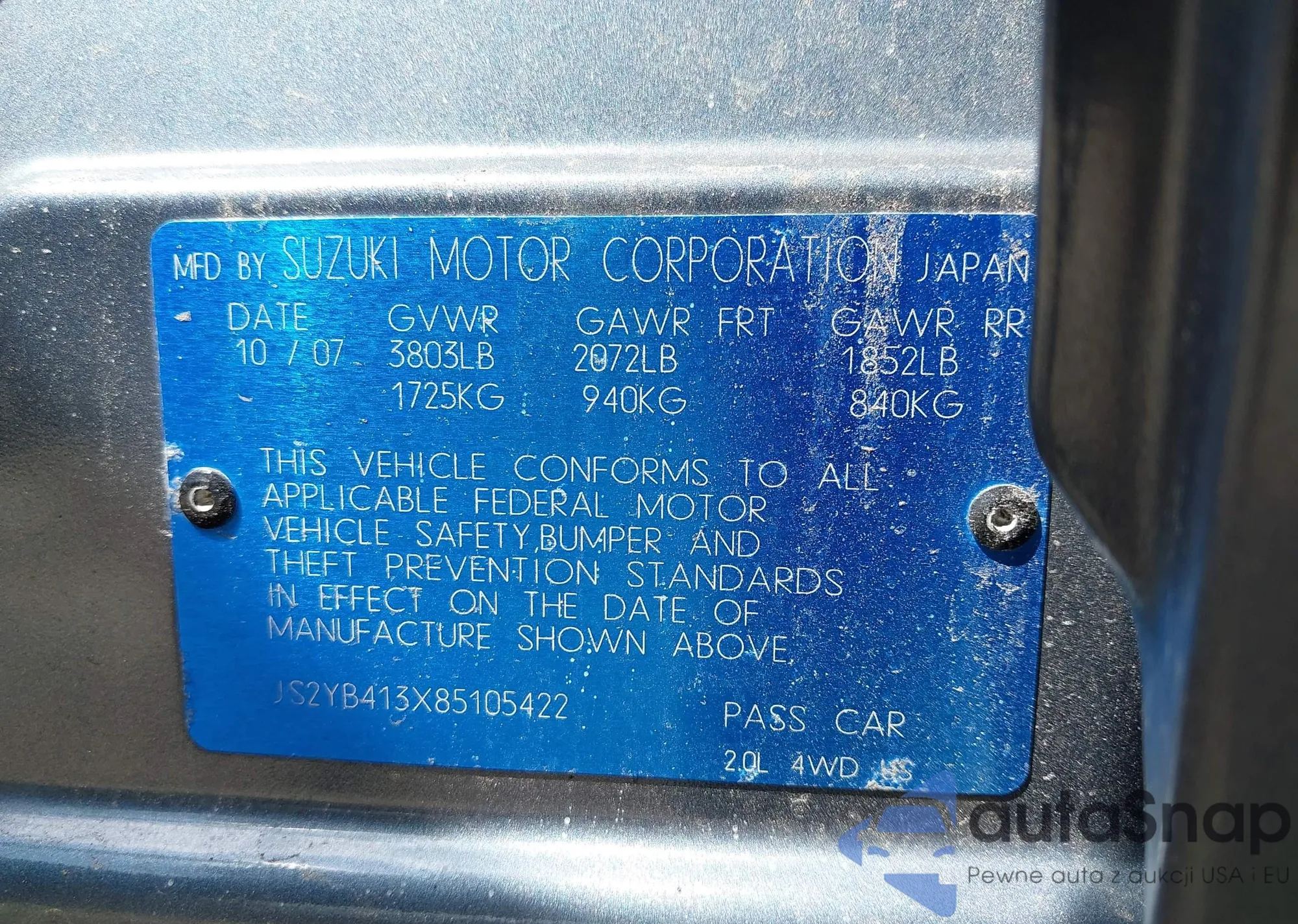 LOT: 42289429 VIN: JS2YB413X85105422