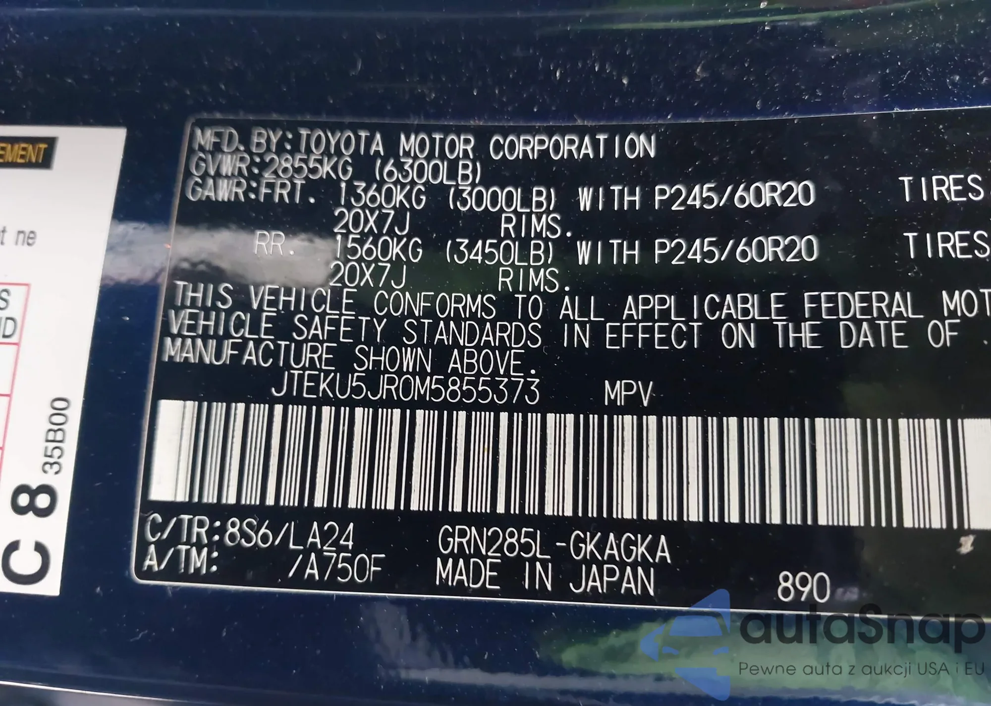 LOT: 42290447 VIN: JTEKU5JR0M5855373