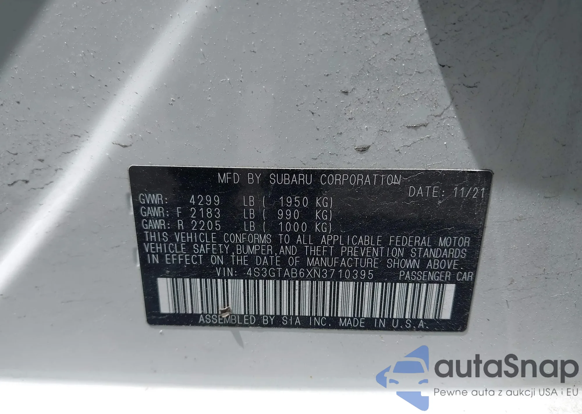 LOT: 42475033 VIN: WBXPA73494WB20326