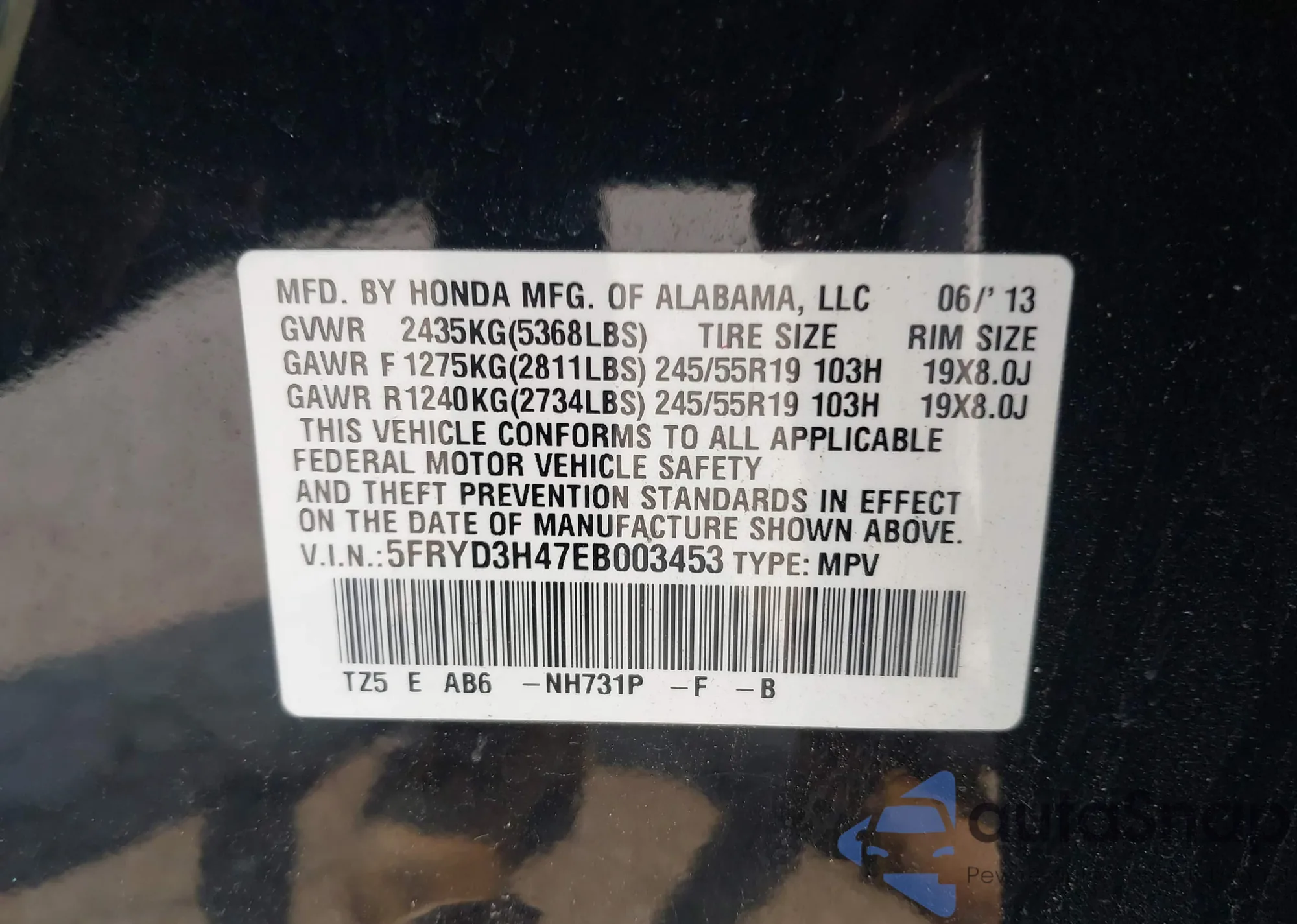 • VIN 5J6RM4H35FL026760