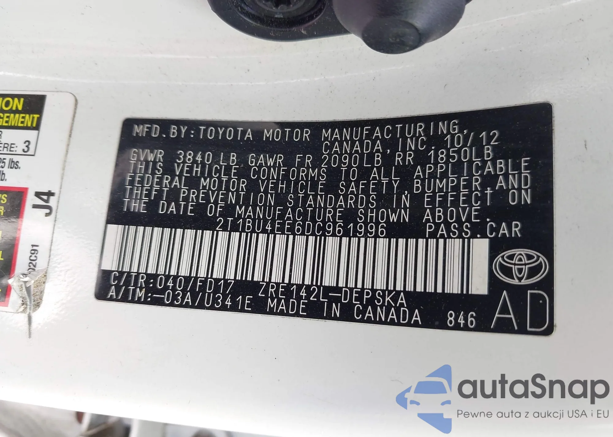 • VIN 2T1BU4EE6DC961996