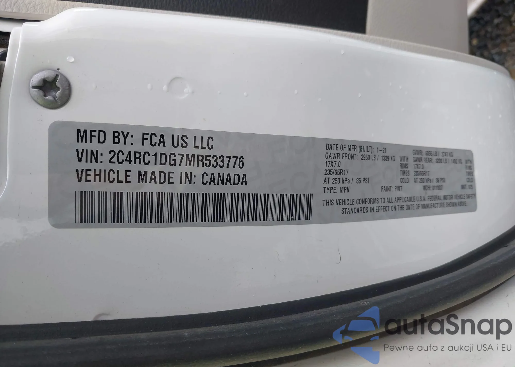 • VIN 2C4RC1DG7MR533776