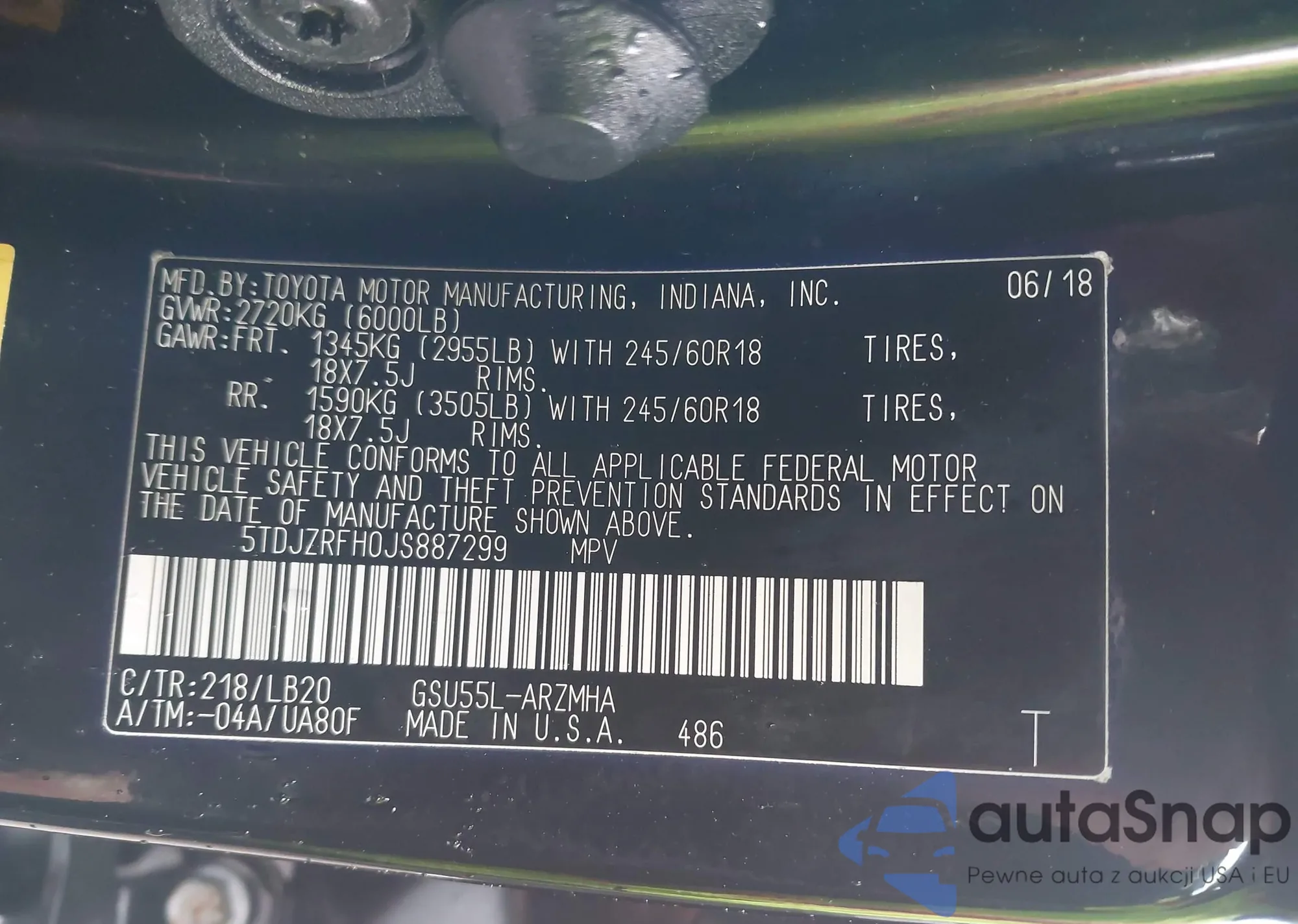 LOT: 42202813 VIN: 5TDJZRFH0JS887299
