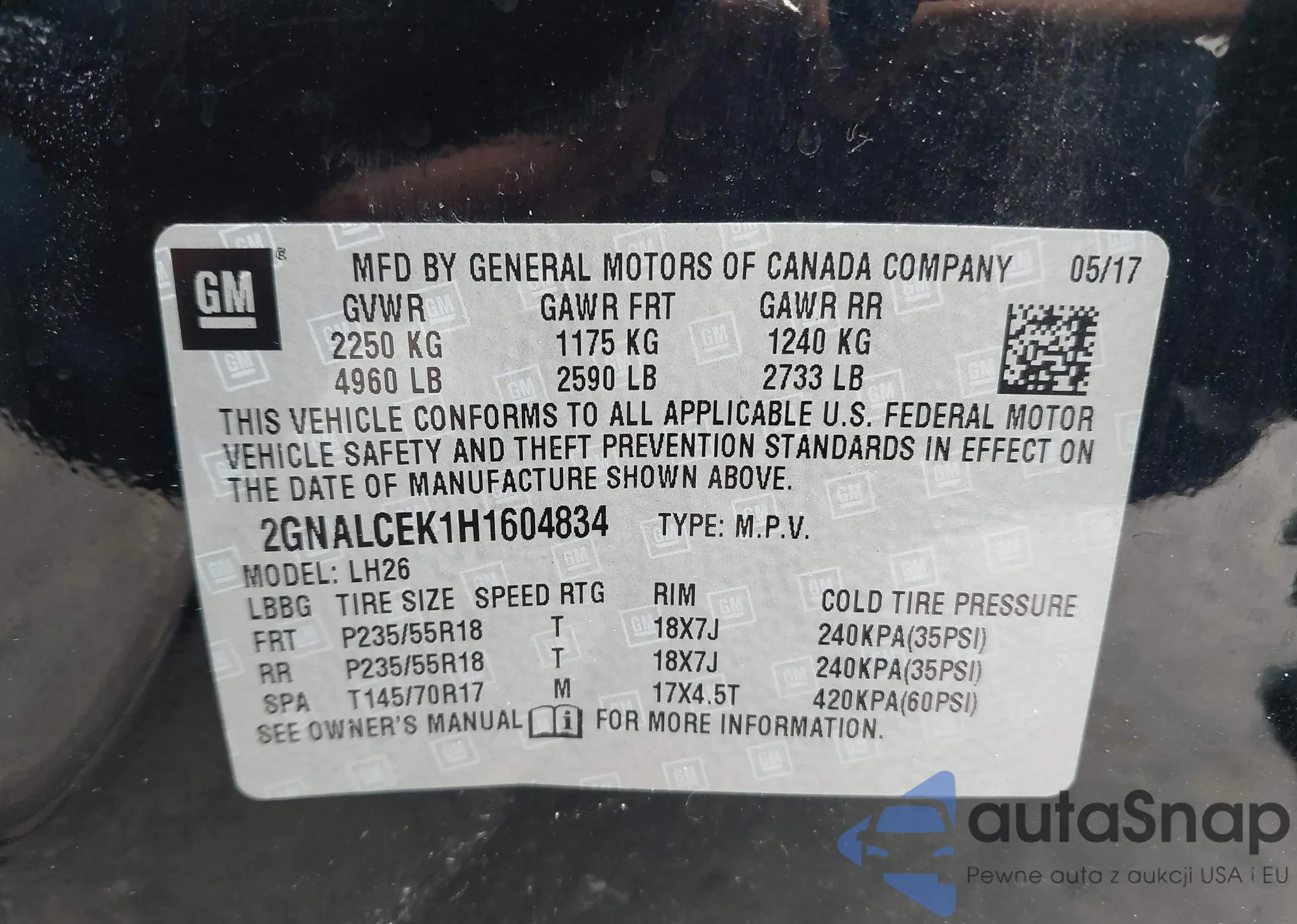 • VIN 2GNALCEK1H1604834