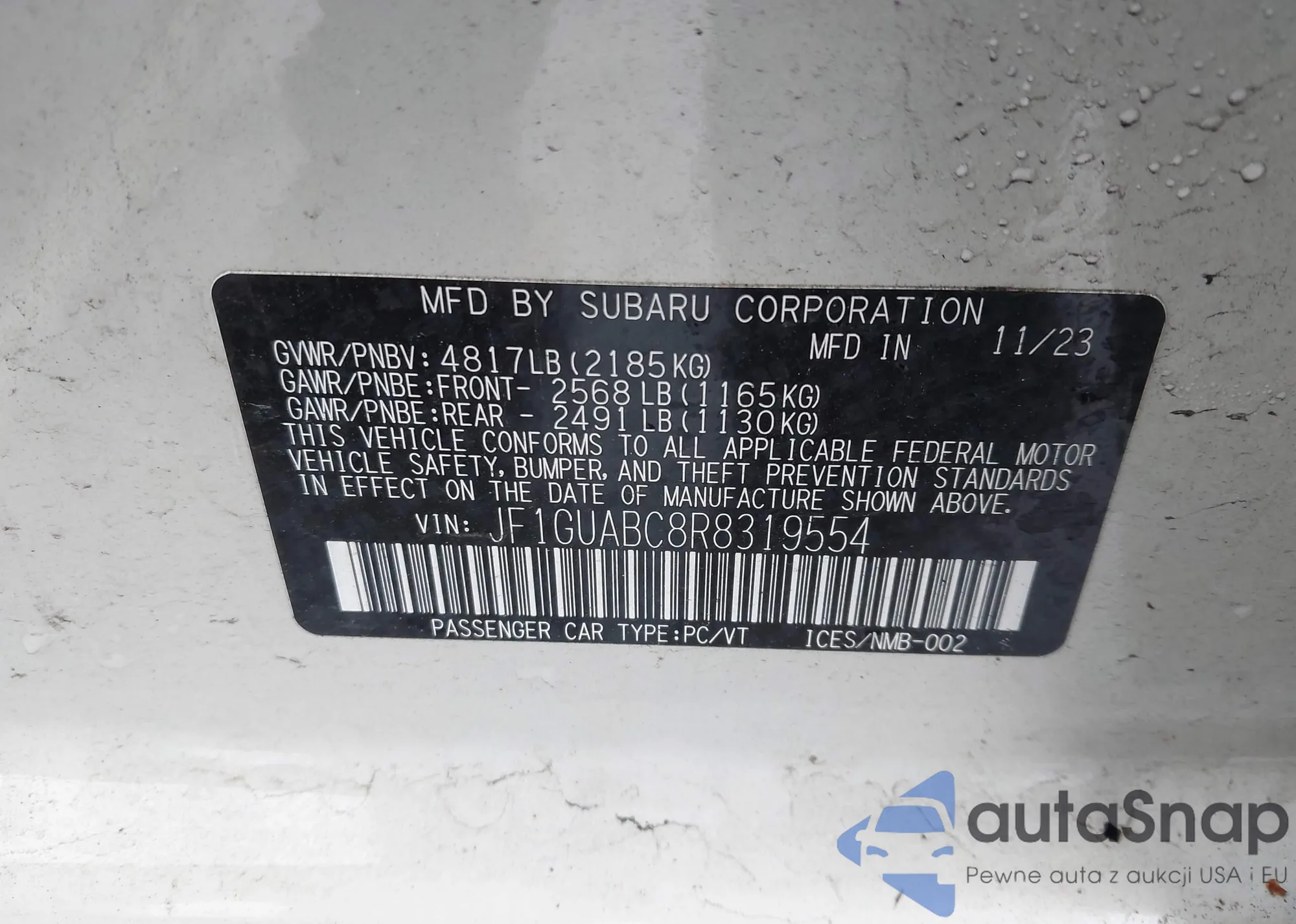 LOT: 42182741 VIN: JF1GUABC8R8319554