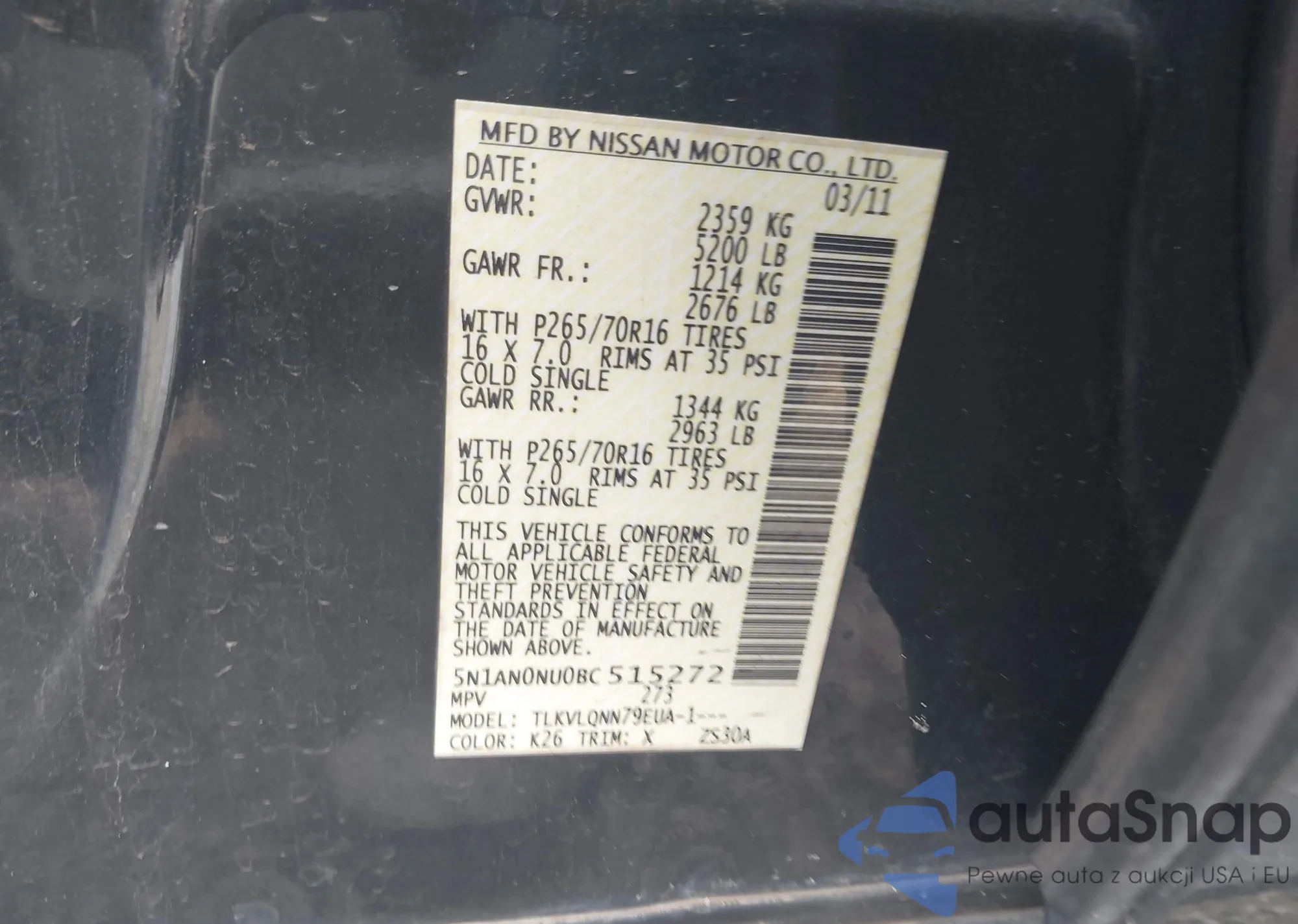 • VIN 5N1AN0NU0BC515272