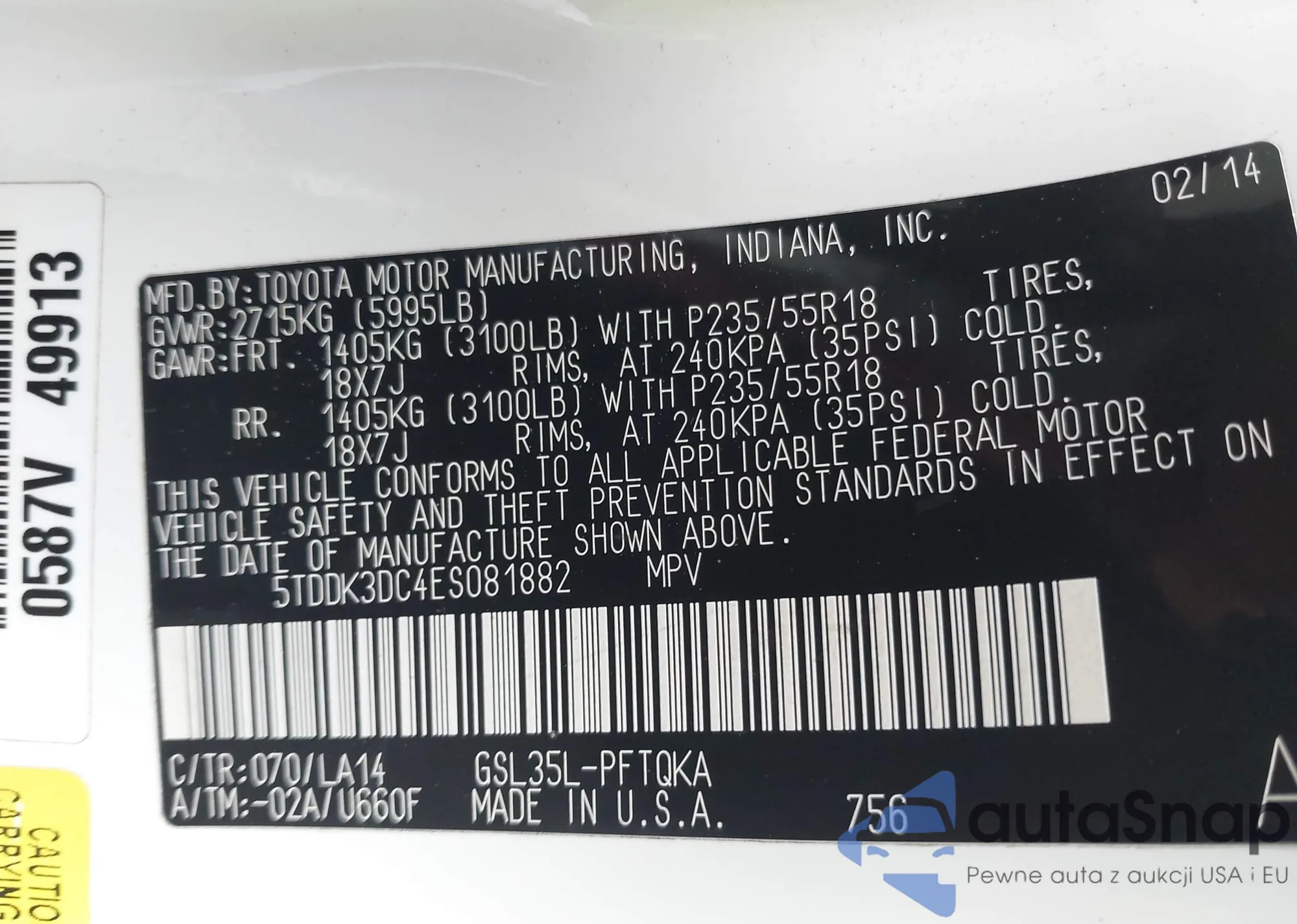 LOT: 42270167 VIN: 5TDDK3DC4ES081882