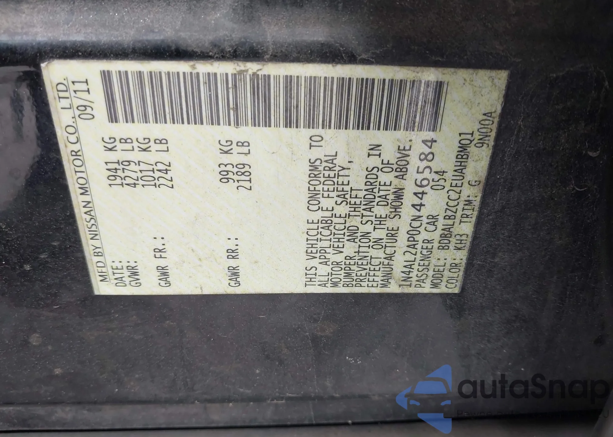 LOT: 42362193 VIN: 1N4AL2AP0CN446584