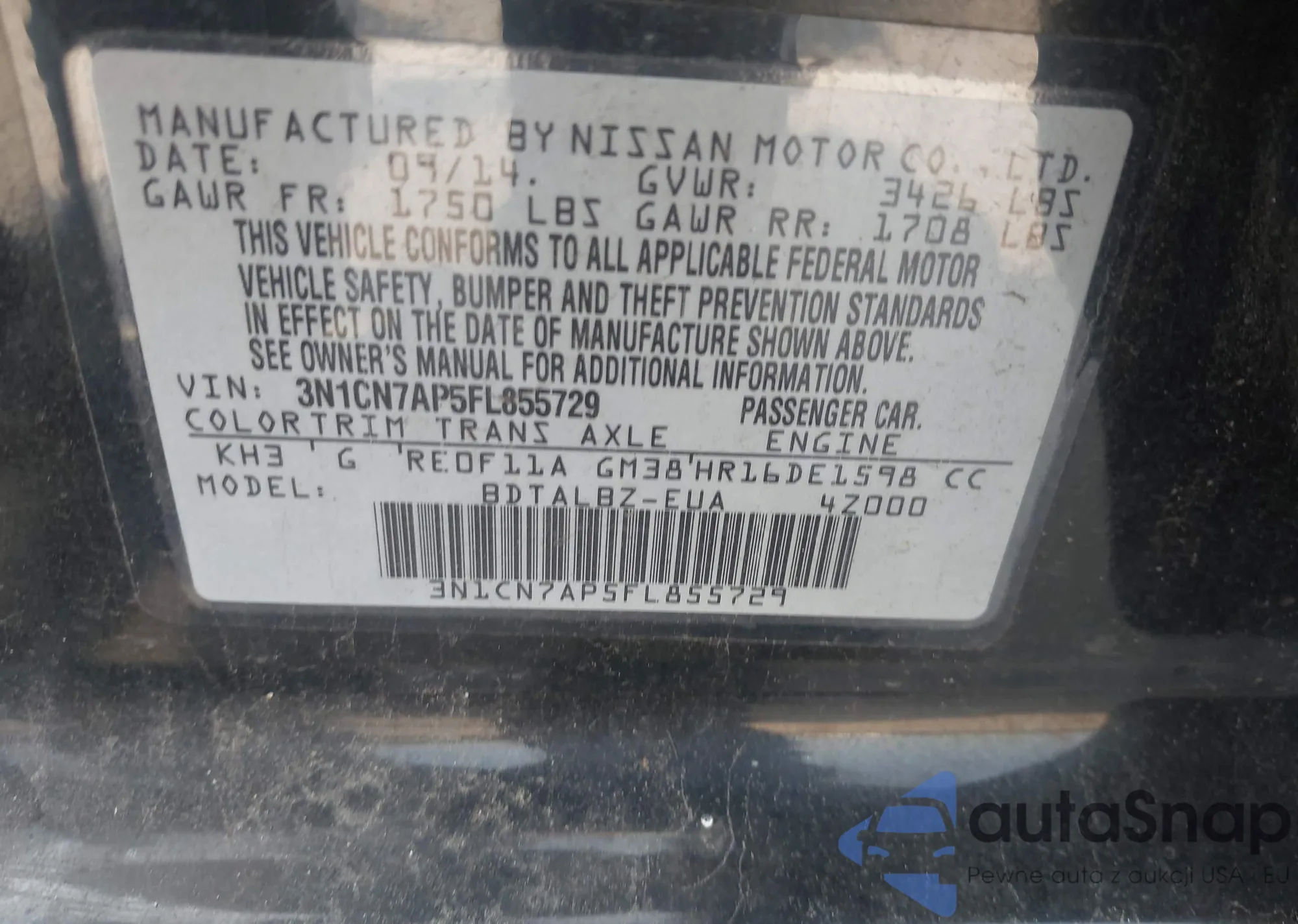 • VIN 3N1CN7AP5FL855729