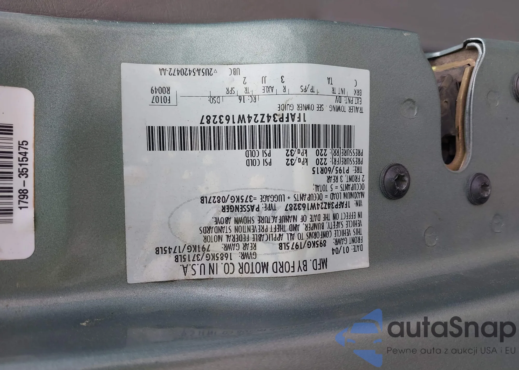 LOT: 42029695 VIN: 1FAFP34Z24W163287