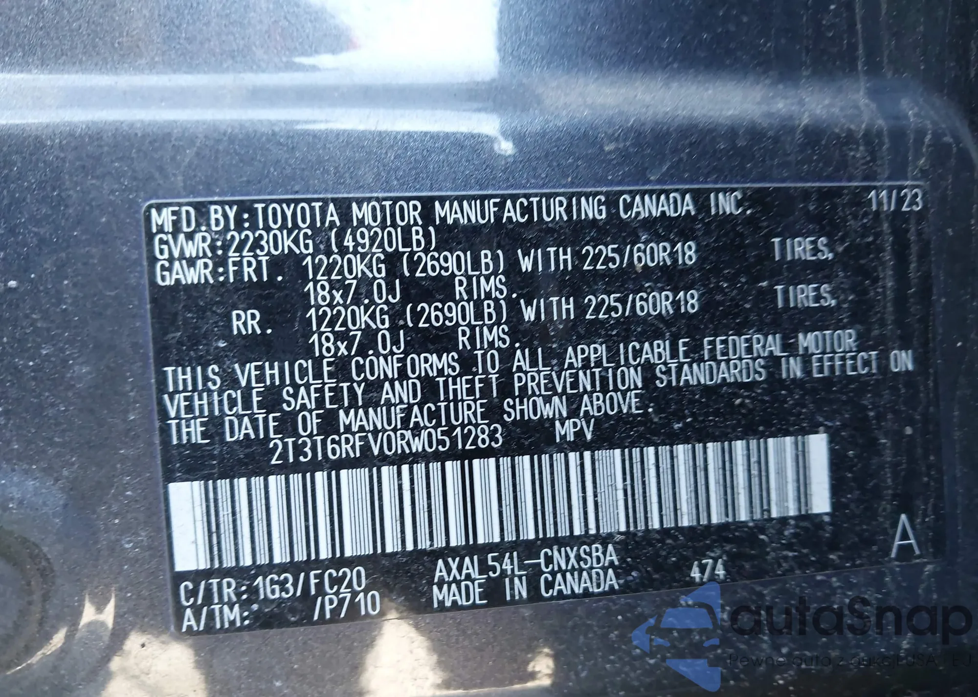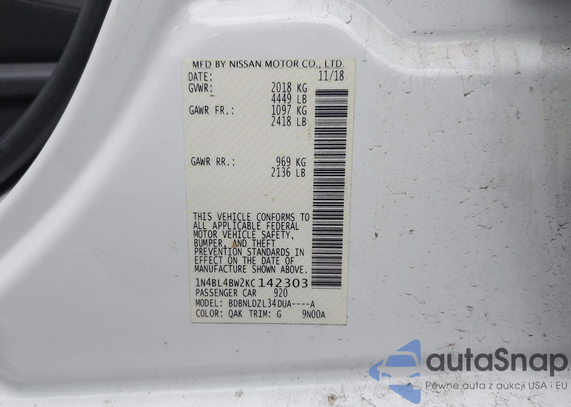 • VIN 1N4BL4BW2KC142303