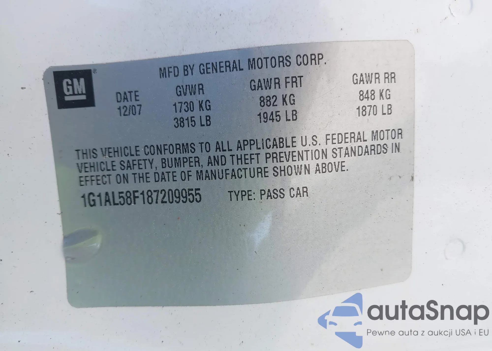 • VIN 4S3GTAU68K3744585