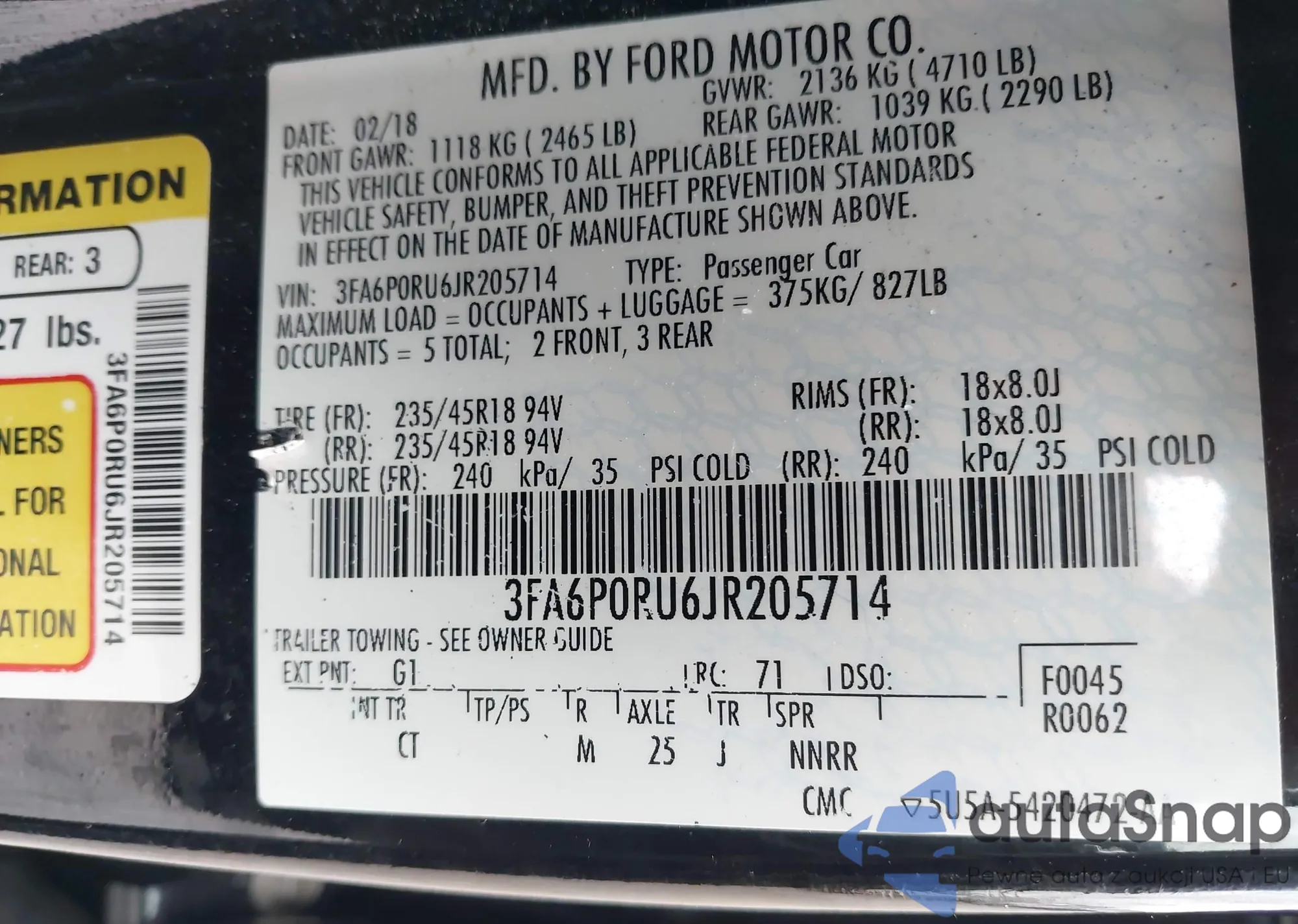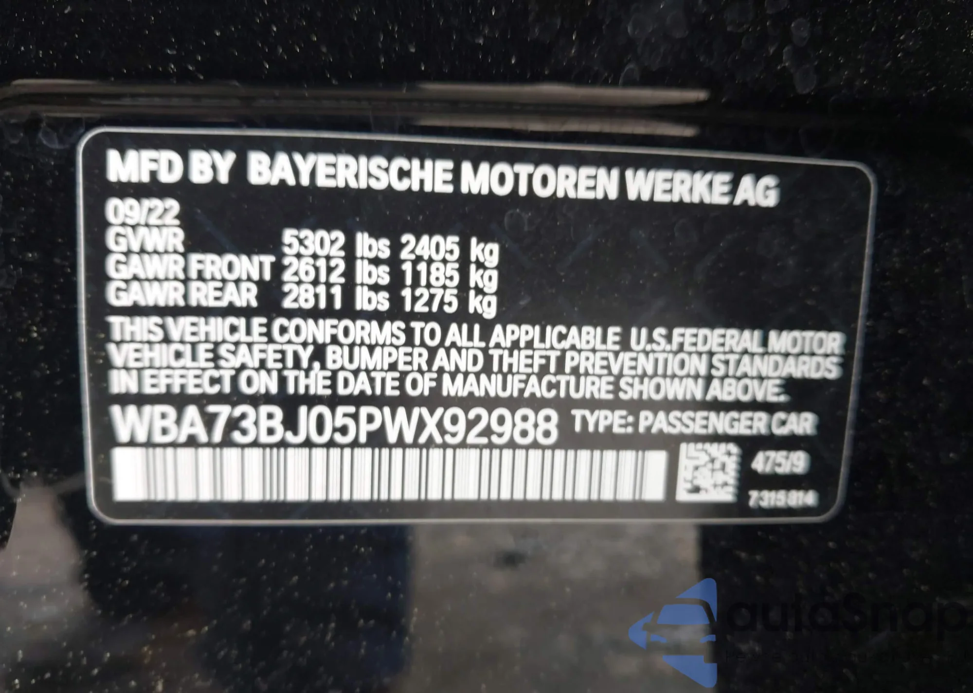 LOT: 42378263 VIN: WBA73BJ05PWX92988