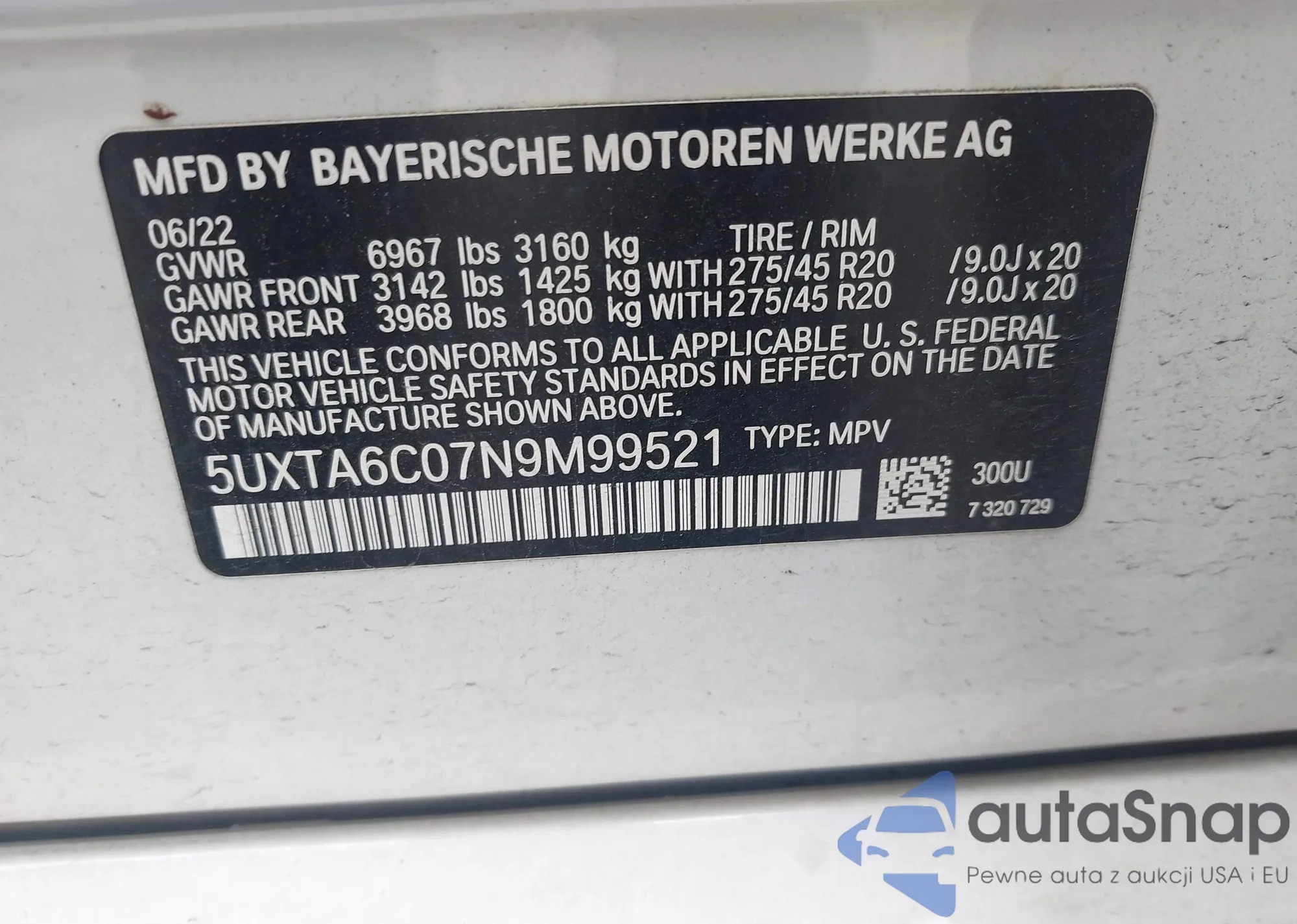 • VIN 5UXTA6C07N9M99521