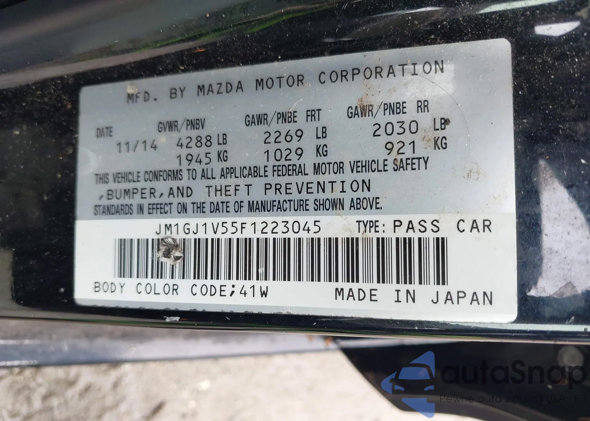 LOT: 42412516 VIN: JM1GJ1V55F1223045