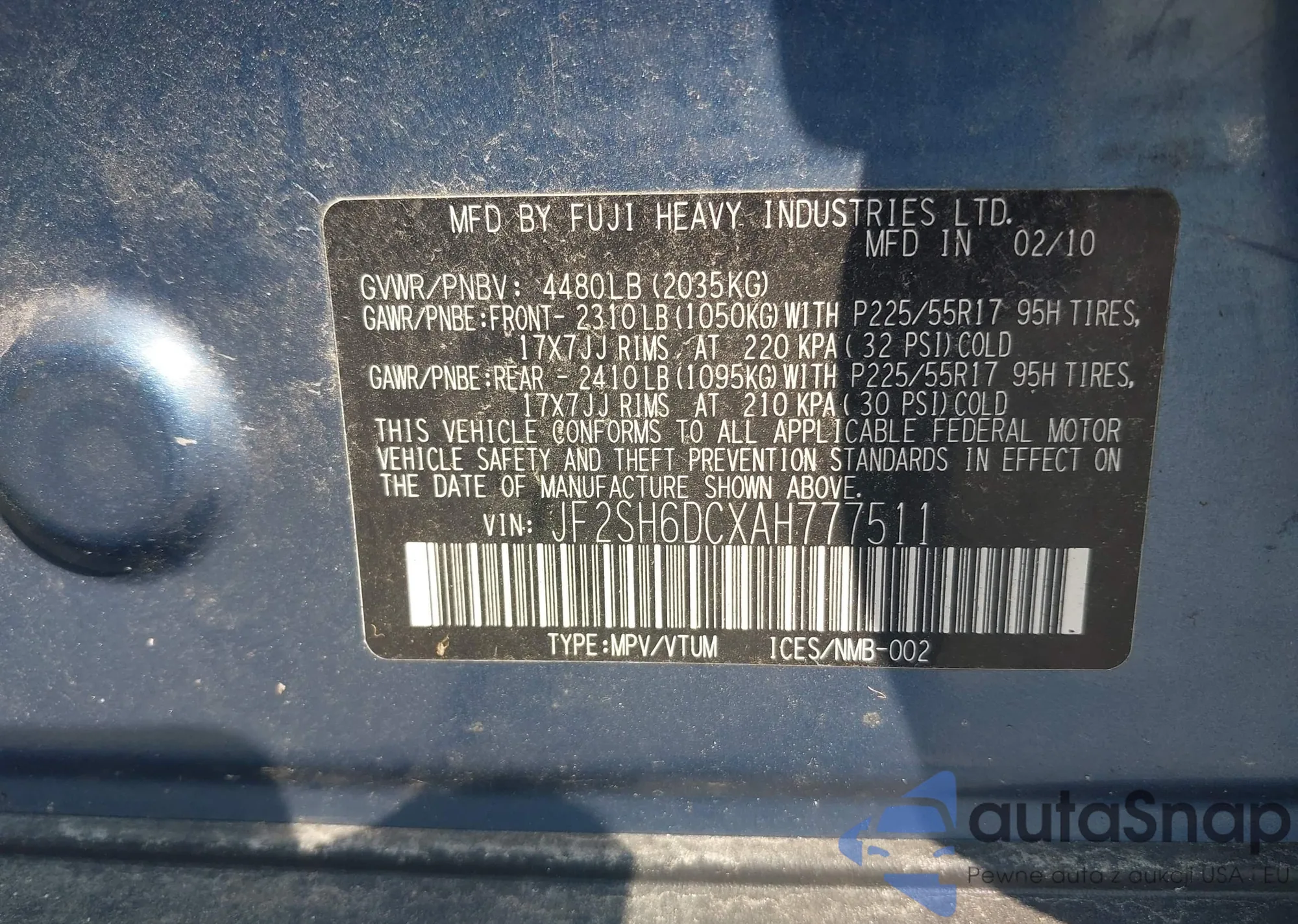 • VIN WUAWRBFC4HN902942