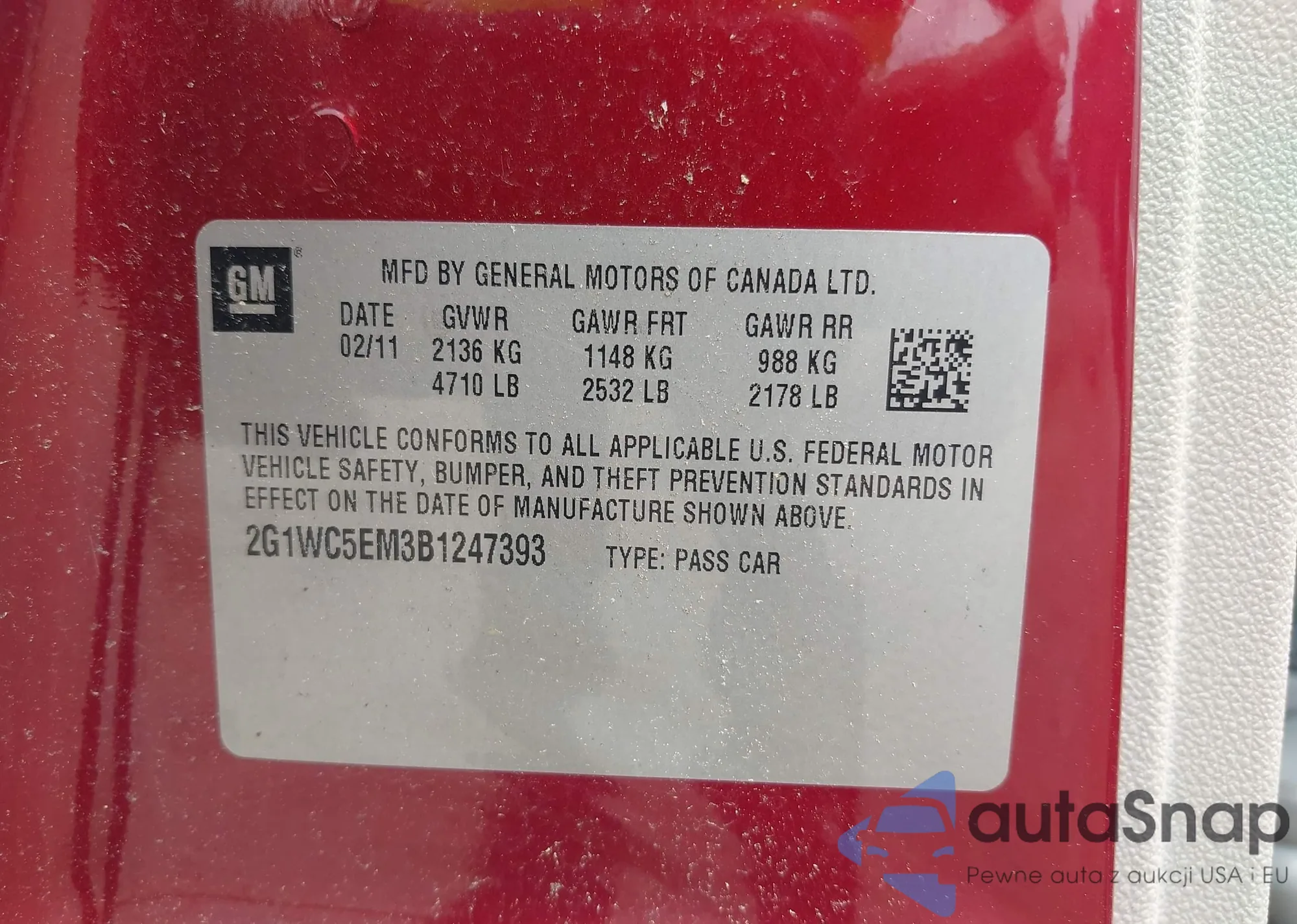 LOT: 42447814 VIN: 2G1WC5EM3B1247393