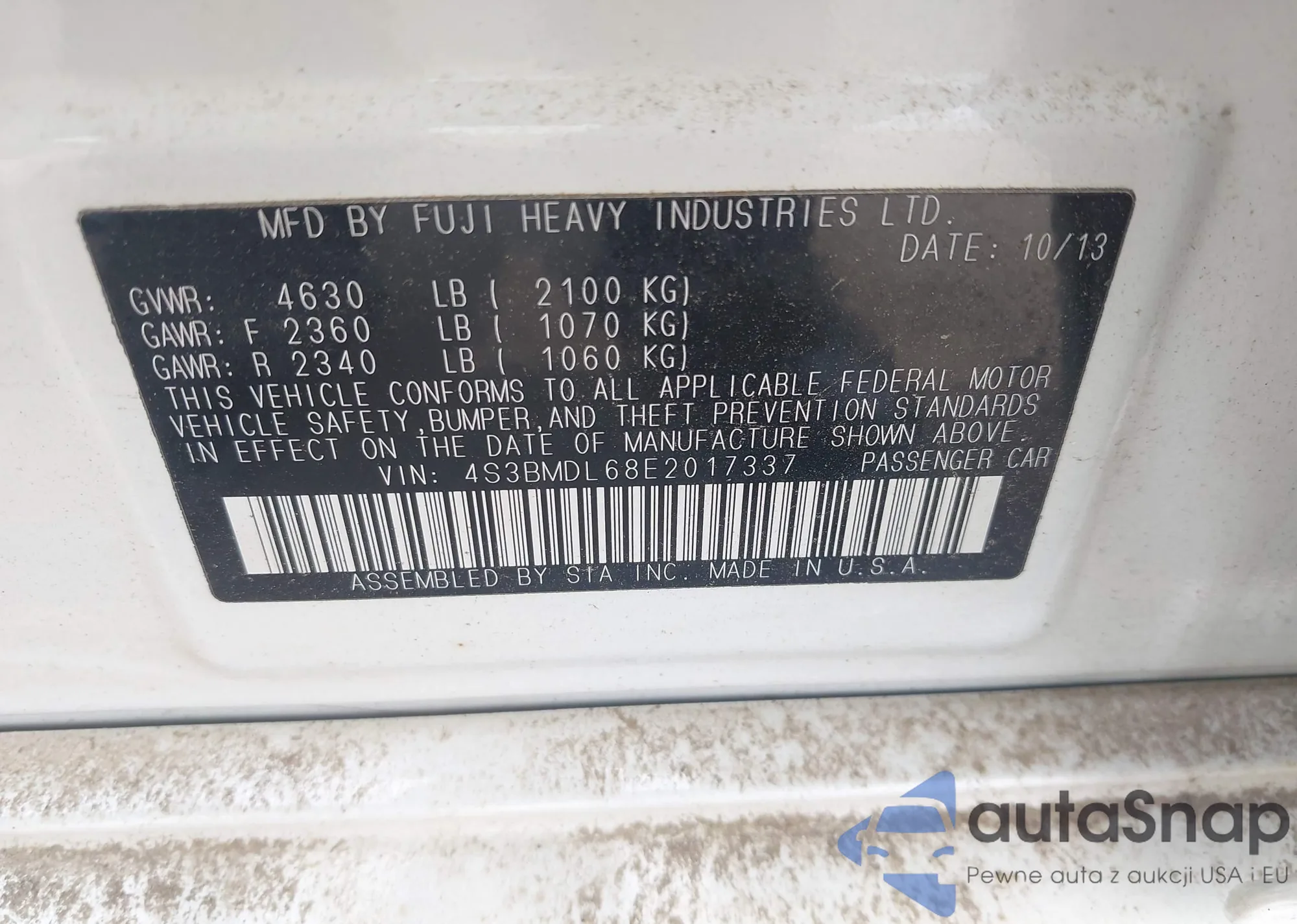 LOT: 42494175 VIN: 4S3BMDL68E2017337
