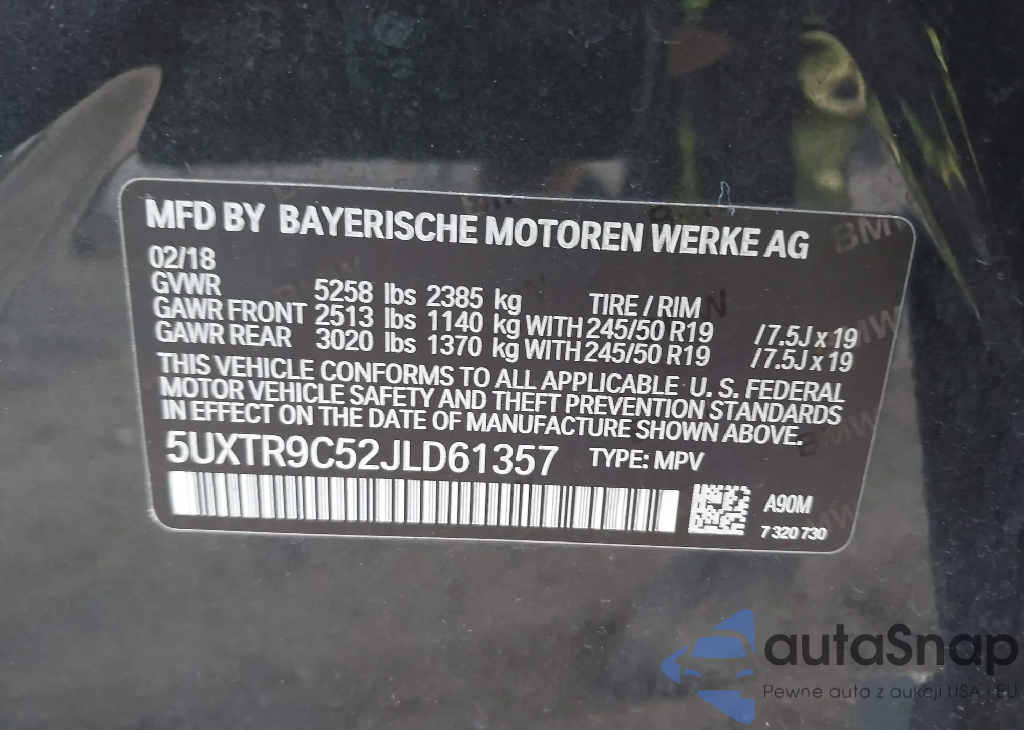 • VIN 5UXTR9C52JLD61357