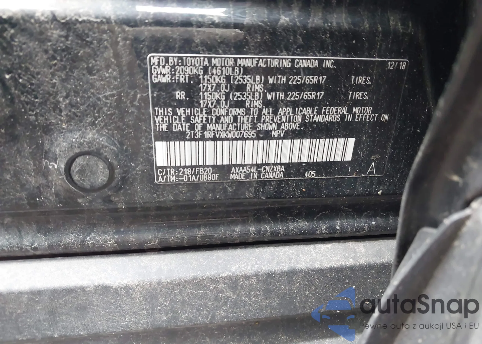 • VIN 2T3F1RFVXKW007695