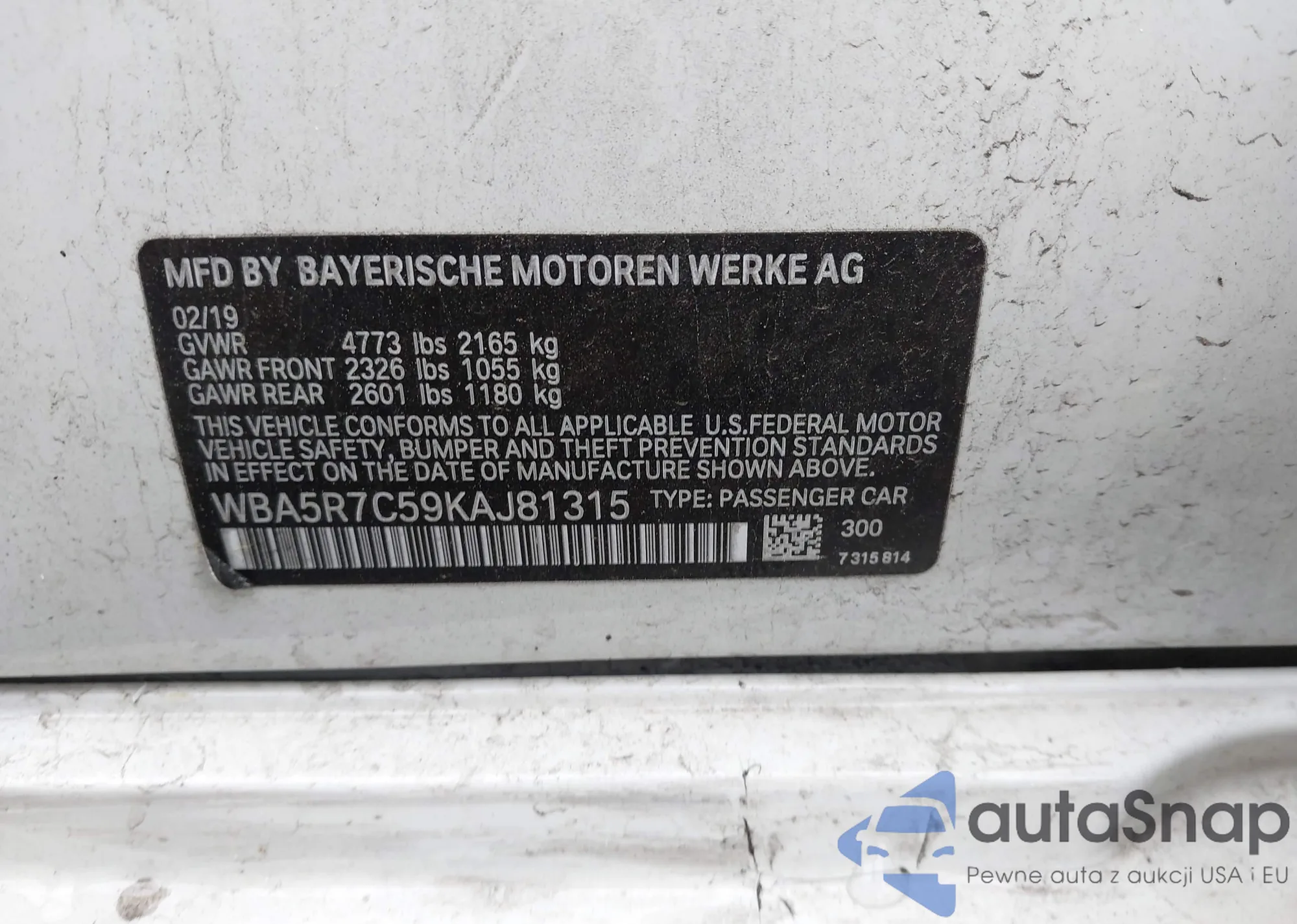 LOT: 42580894 VIN: WBA3C1C56FP851251