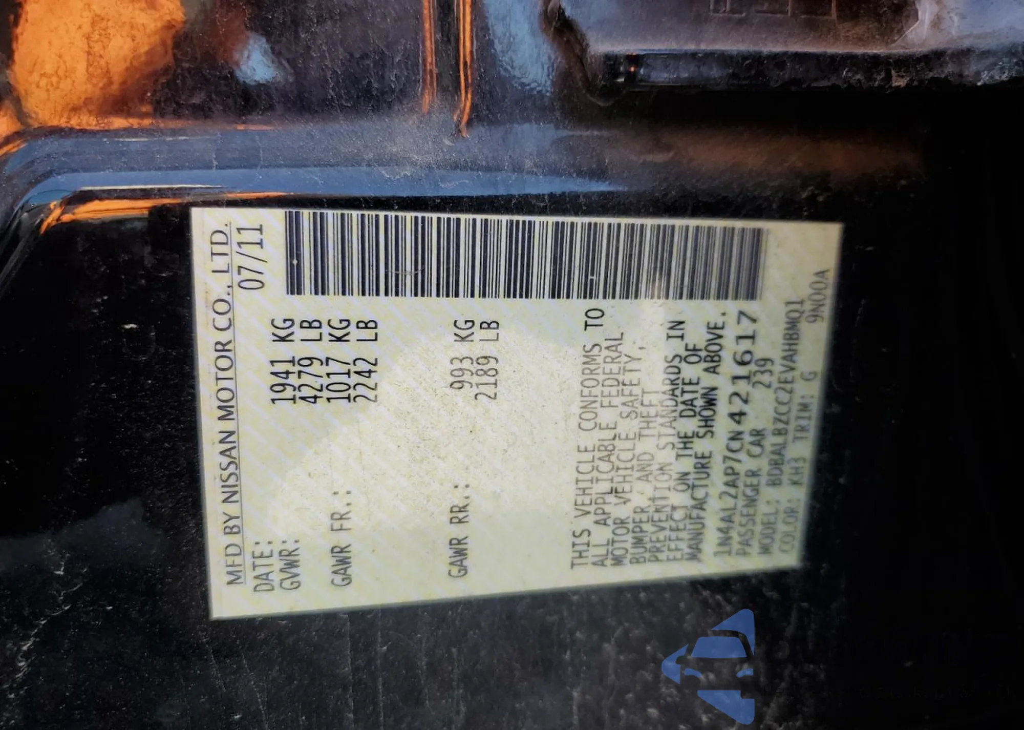 • VIN 1N4AL2AP7CN421617