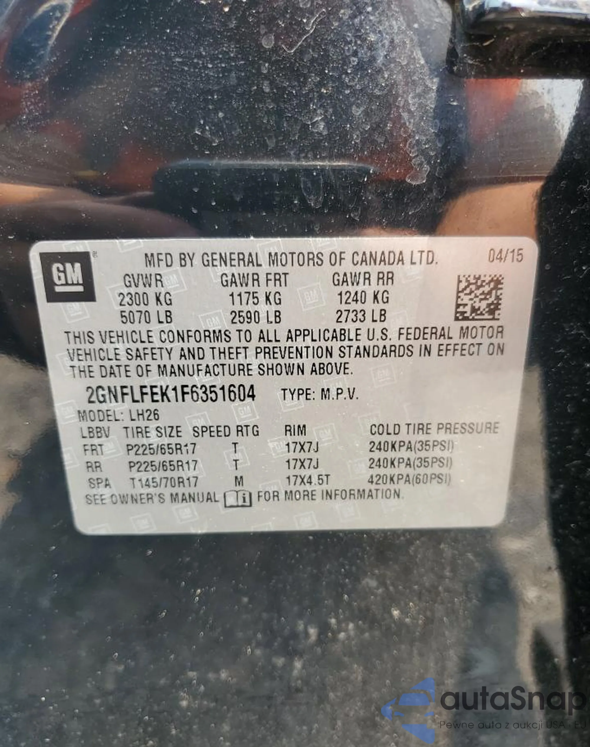 • VIN 2GNFLFEK1F6351604