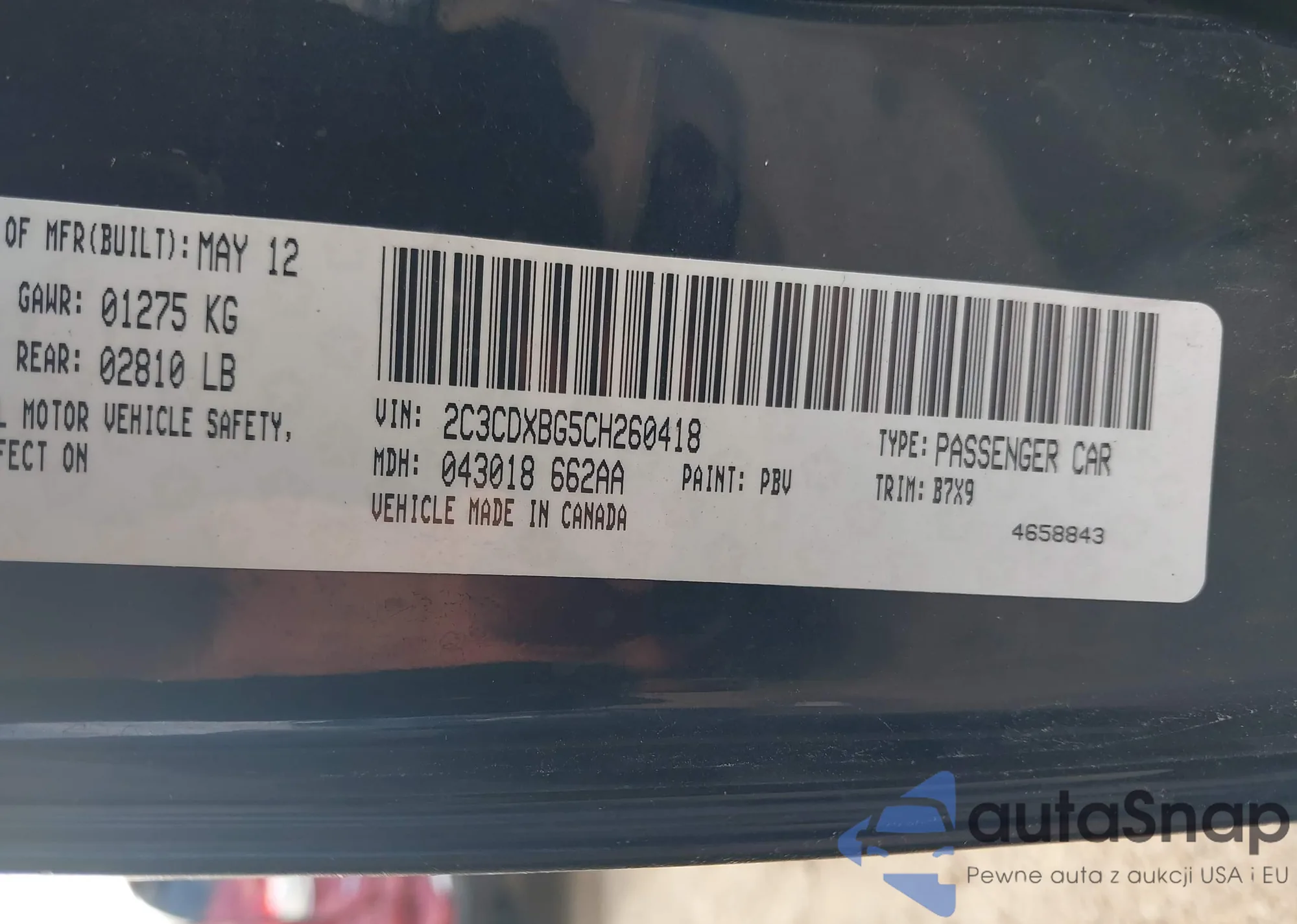 • VIN 2C3CDXBG5CH260418