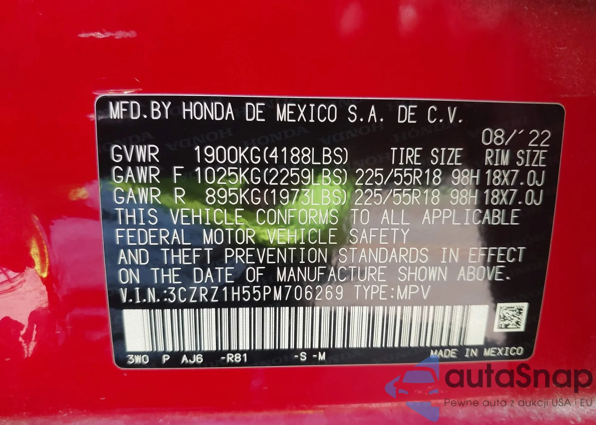 • VIN 3CZRZ1H55PM706269