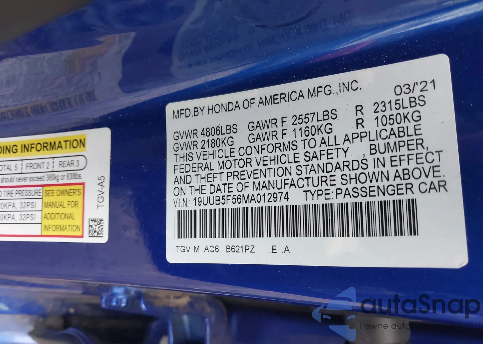 • VIN 2HGFA1F53AH527822
