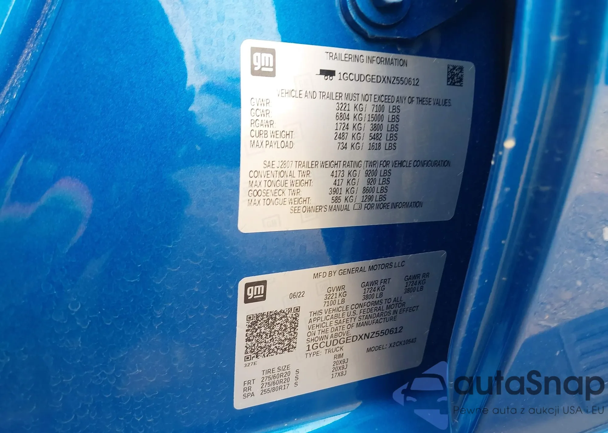 • VIN 1GCUDGEDXNZ550612