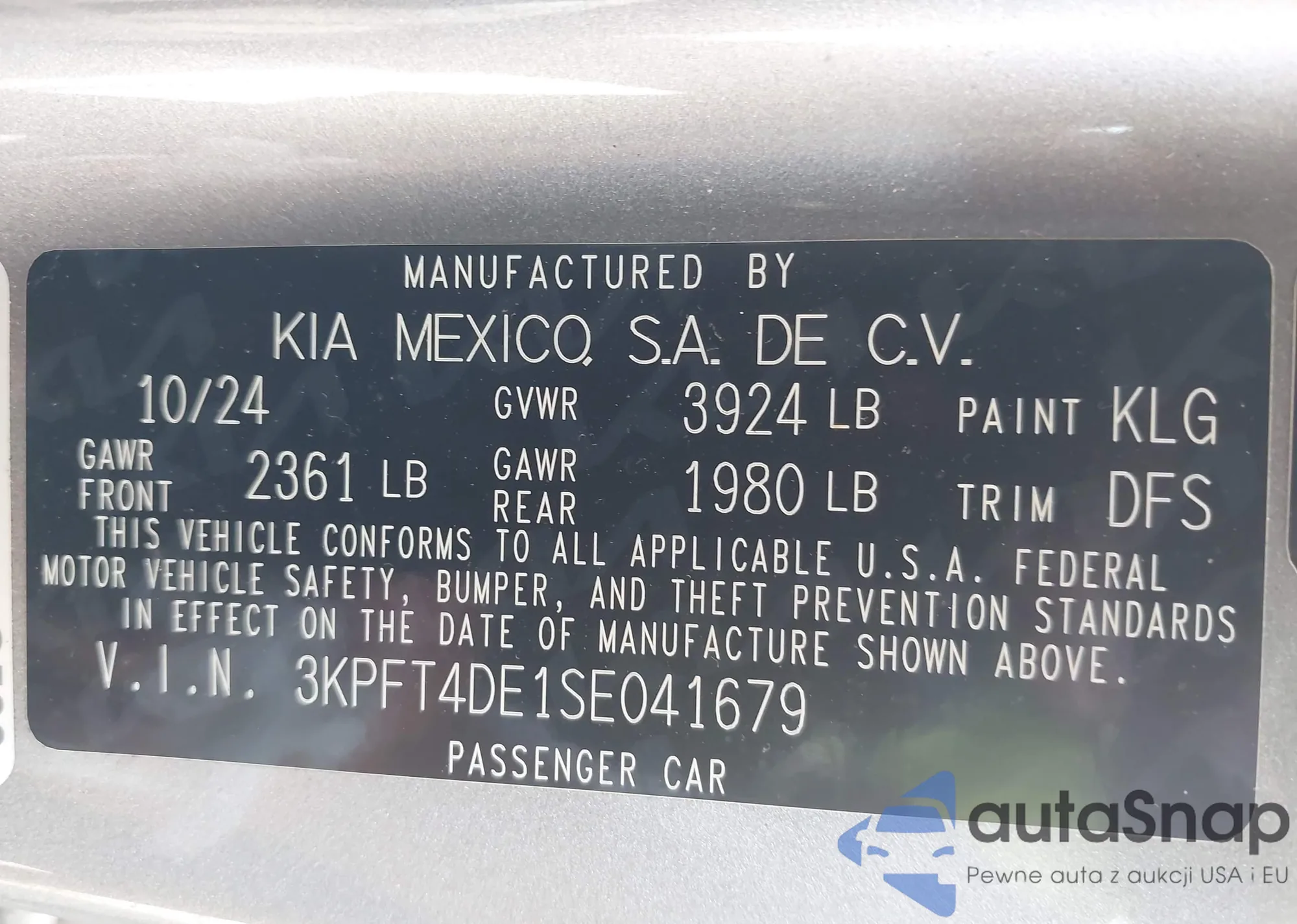 • VIN 3KPFT4DE1SE041679
