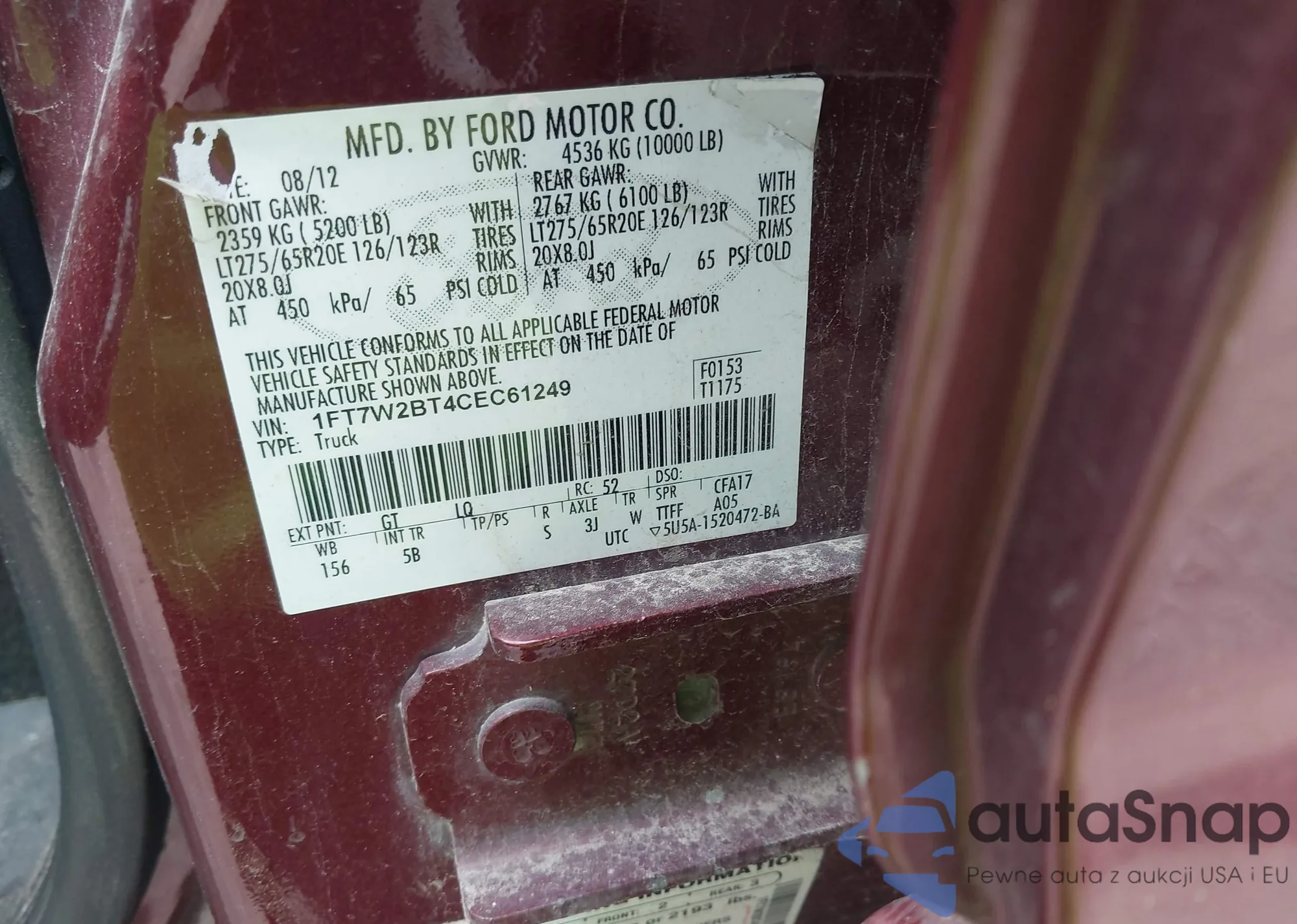 • VIN 1FT7W2BT4CEC61249
