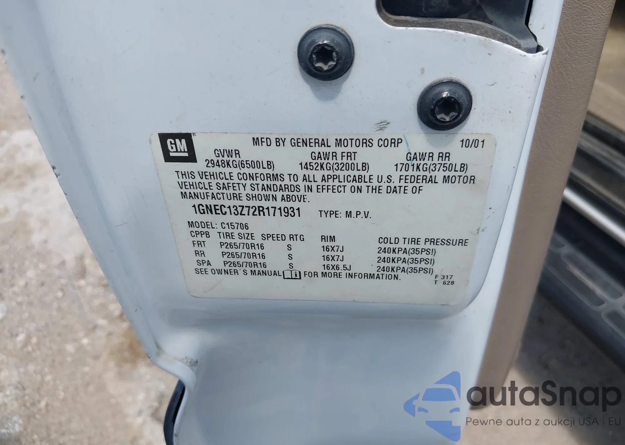 • VIN 1GNEC13Z72R171931