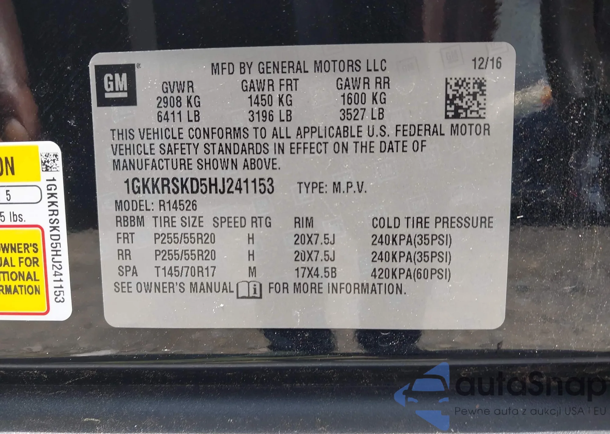 • VIN 1GKKRSKD5HJ241153