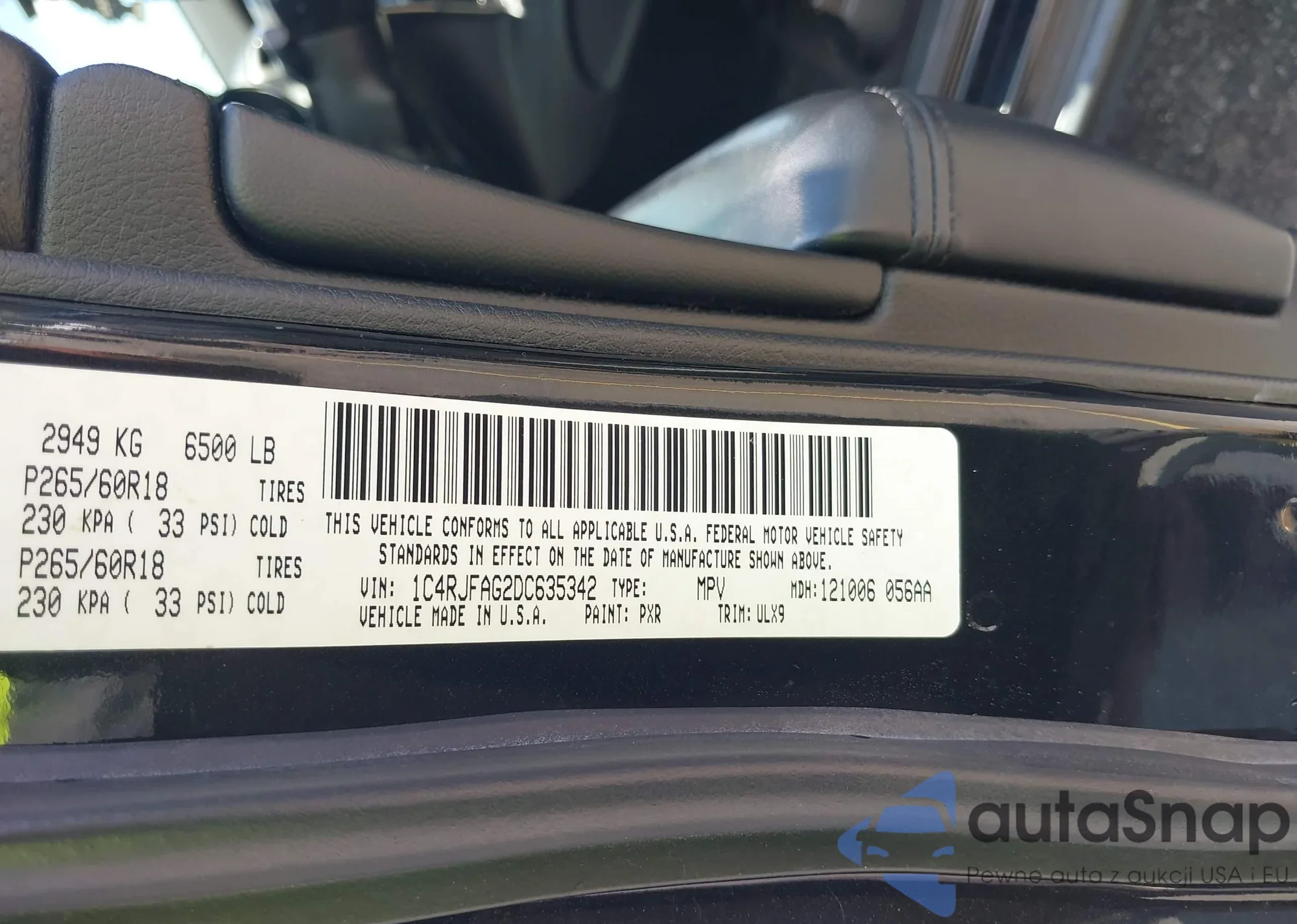 LOT: 42565439 VIN: 1C4RJFAG2DC635342