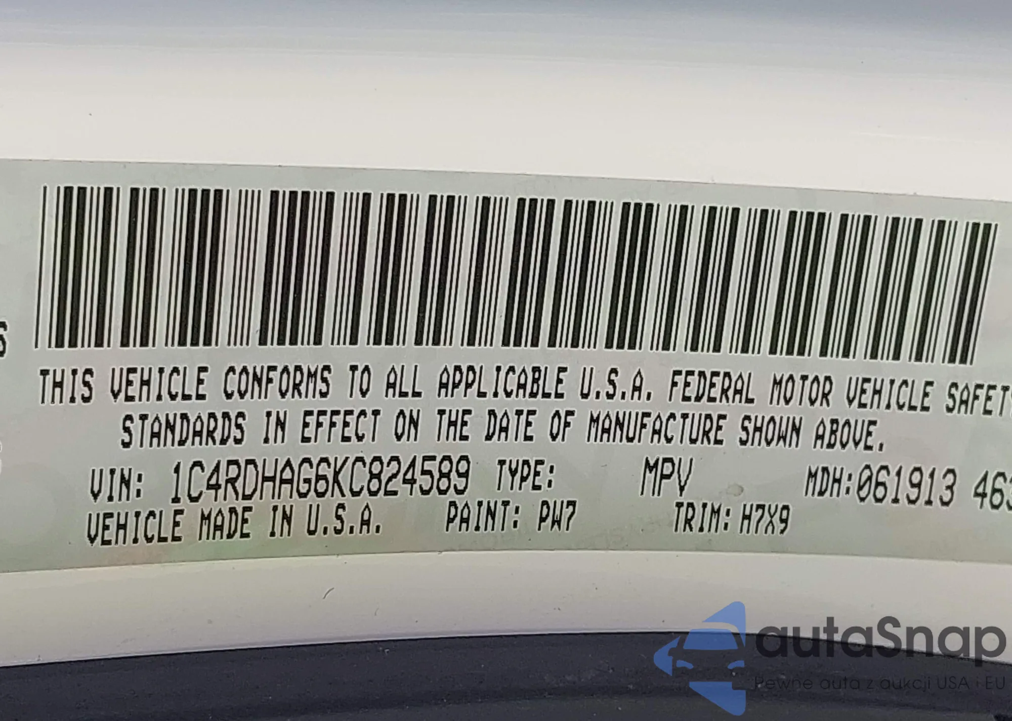 LOT: 42431830 VIN: 1C4RDHAG6KC824589