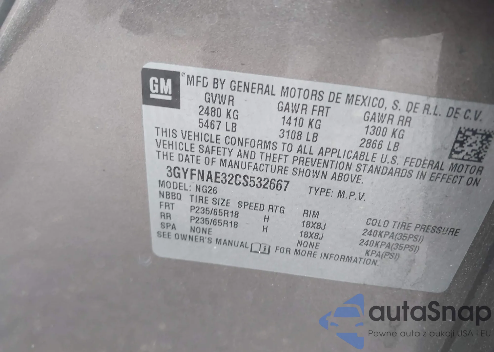 • VIN 3GYFNAE32CS532667