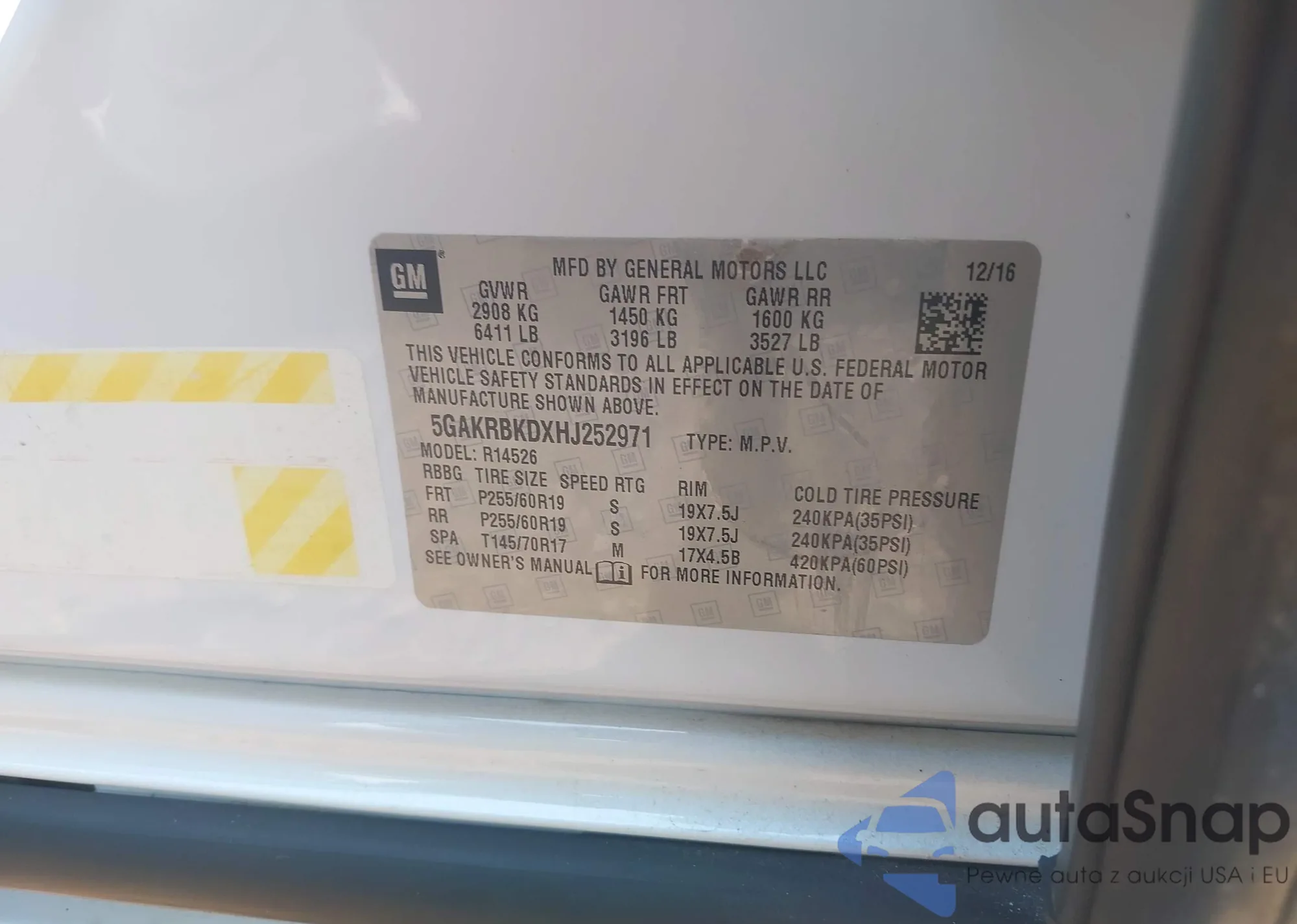 LOT: 42312725 VIN: 5GAKRBKD9HJ218052