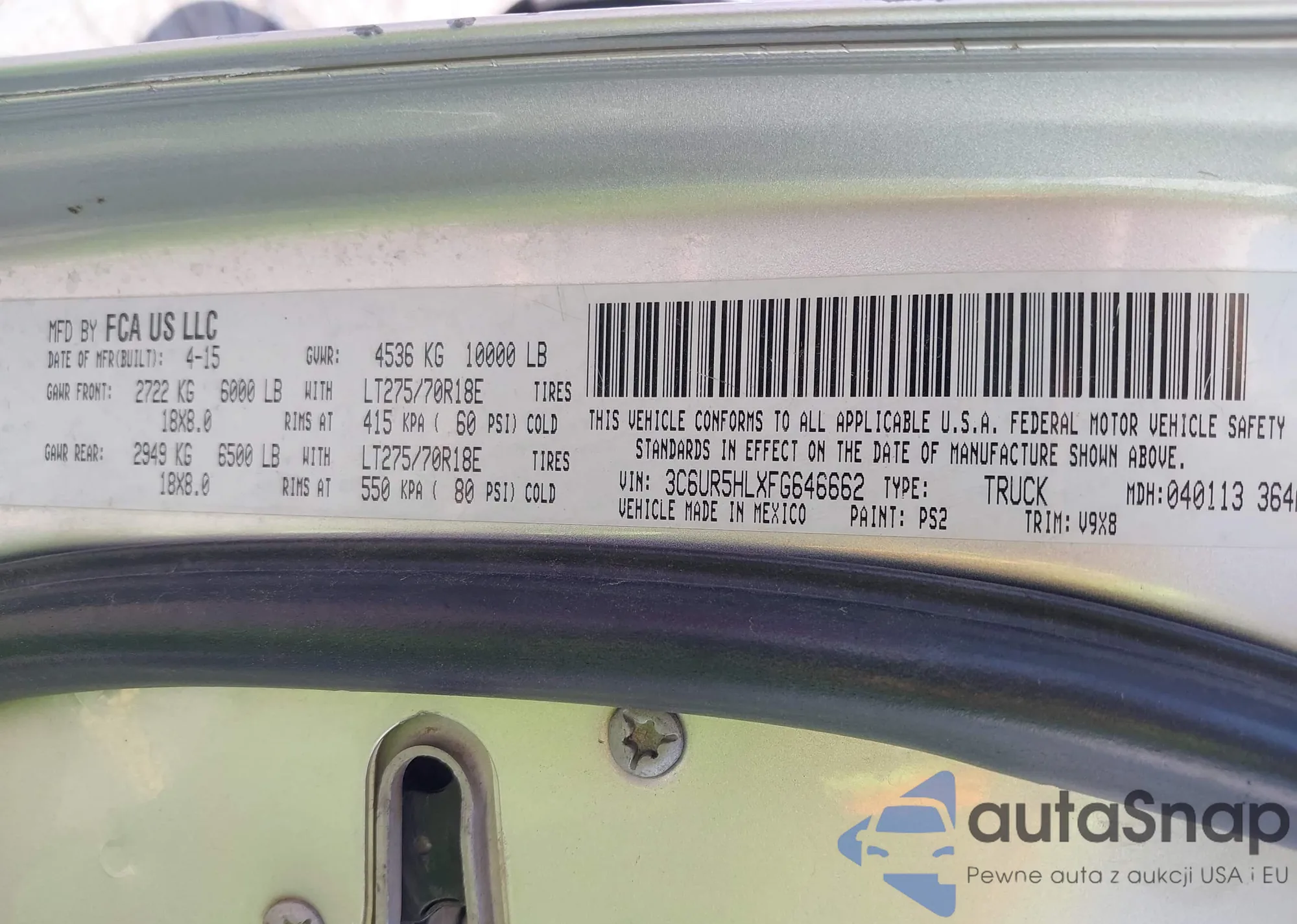 • VIN 3C6UR5HLXFG646662
