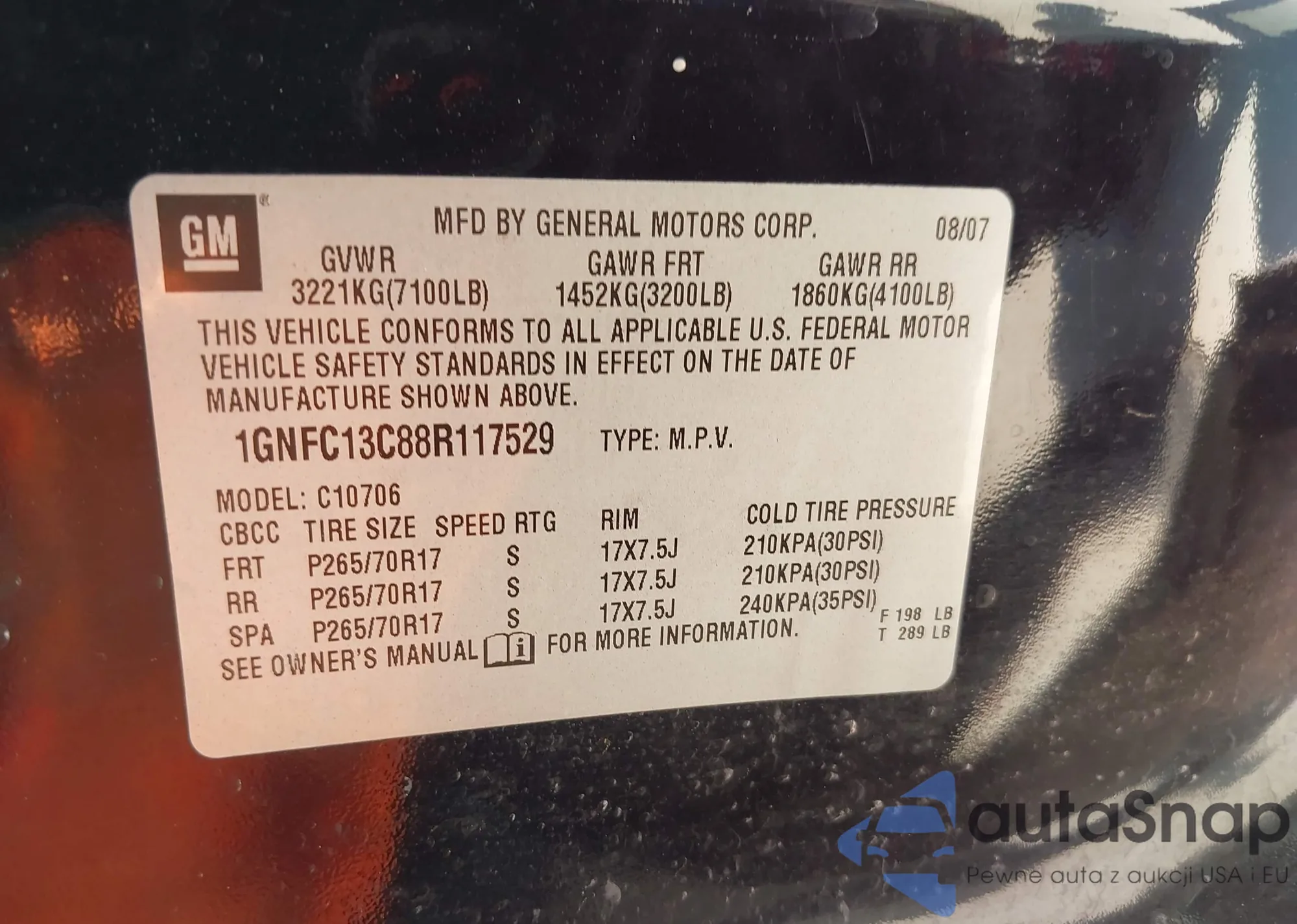 • VIN 1GNLRFED9AS127098